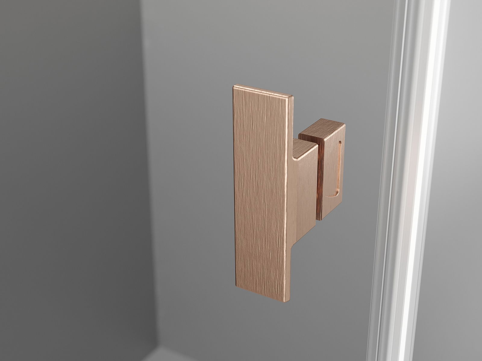Η πρακτική και άνετη λαβή κατασκευάζεται από ανθεκτικό και αντοχής μέταλλο. Ο μοντέρνος σχεδιασμός σε συνδυασμό με το φινίρισμα που ταιριάζει με το χρώμα των προφίλ προσδίδει στο σύνολο μια σύγχρονη και κομψή εμφάνιση, τονίζοντας την αισθητική κάθε μπάνιου.