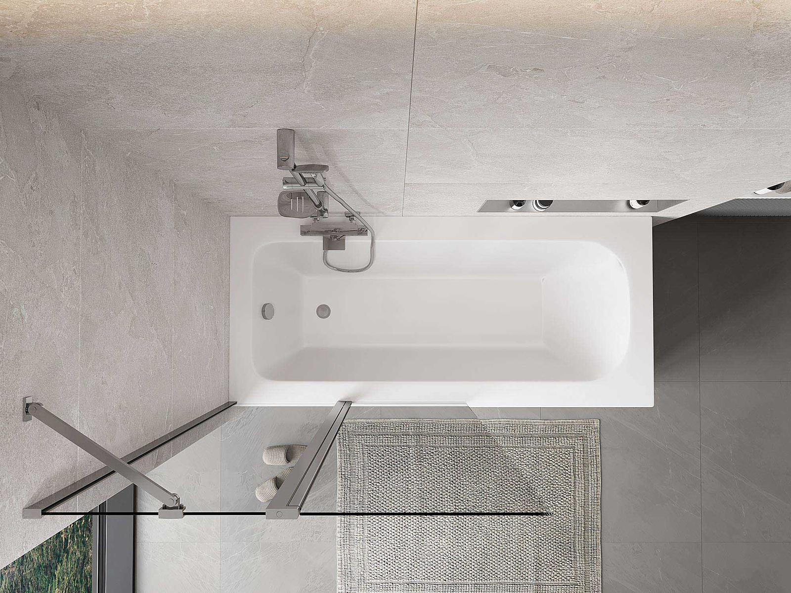 Ο διαχωριστικό κατασκευασμένο από δύο φτερά με δυνατότητα αναδίπλωσης. Αυτή η λύση επιτρέπει την εξοικονόμηση περισσότερου χώρου στο μπάνιο και παρέχει τη δυνατότητα ελεύθερης χρήσης του υπόλοιπου χώρου όταν δεν χρησιμοποιούμε την περιοχή κολύμβησης.