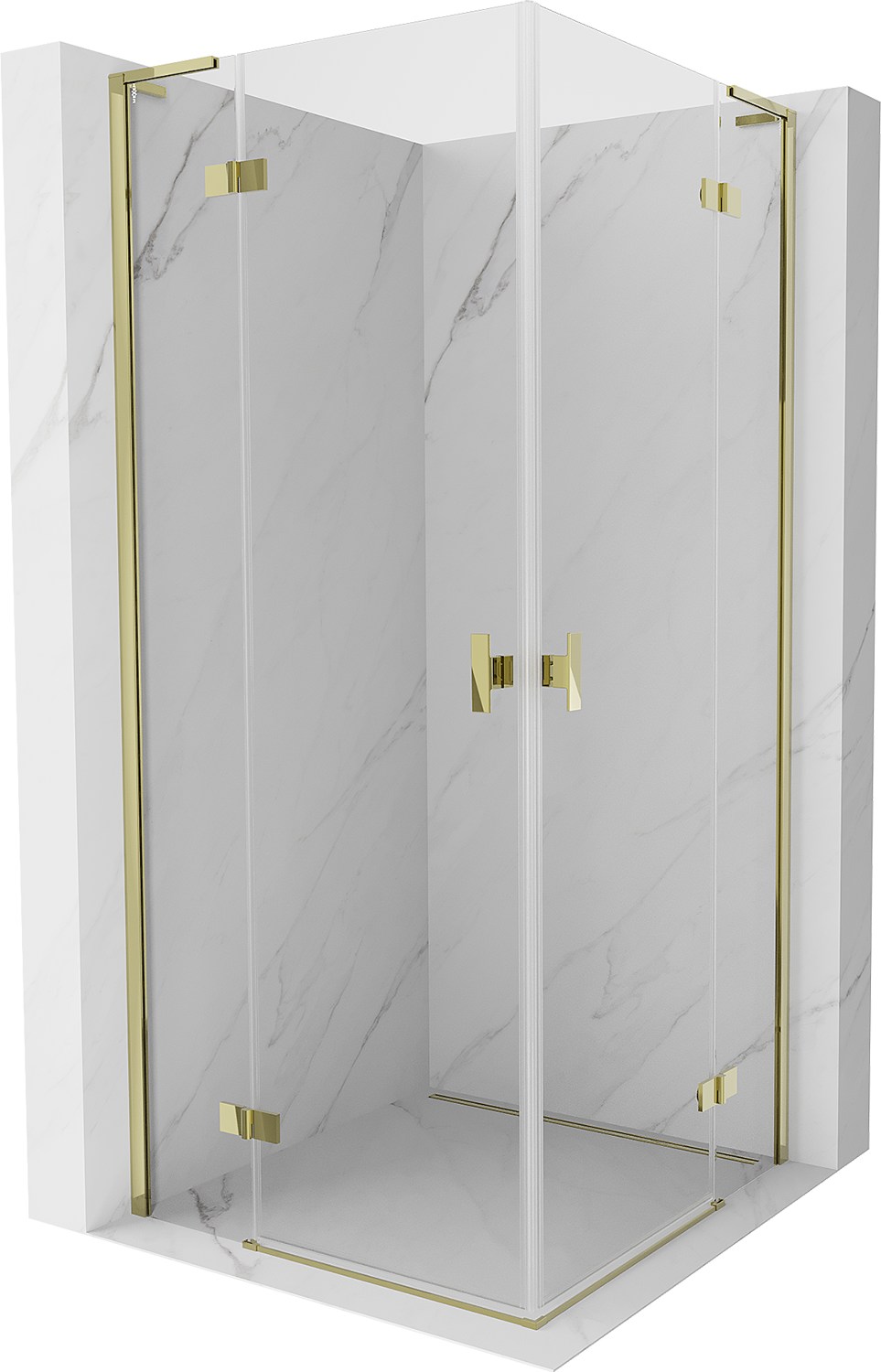 Mexen Mist-H L Δίδυμη καμπίνα ντους περιστρεφόμενη 110 x 110 cm, διαφανής, χρυσή