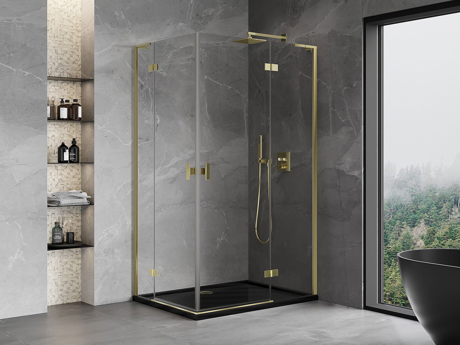 Mexen Mist-H L Διπλή ντουζιέρα δεξιά κρεμαστή 85 x 115 εκ., διάφανη, χρυσή