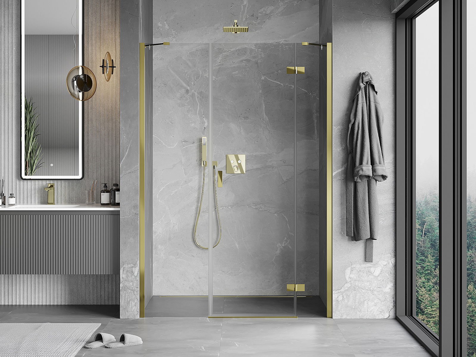 Mexen Mist-H δεξιά περιστροφική πόρτα ντους 160 εκ., διαφανής, χρυσή