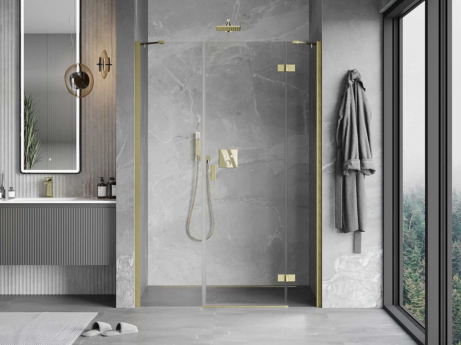 Mexen Mist-H δεξιά ανοιγόμενη πόρτα ντους 155 cm, διάφανο, βουρτσισμένο χρυσό