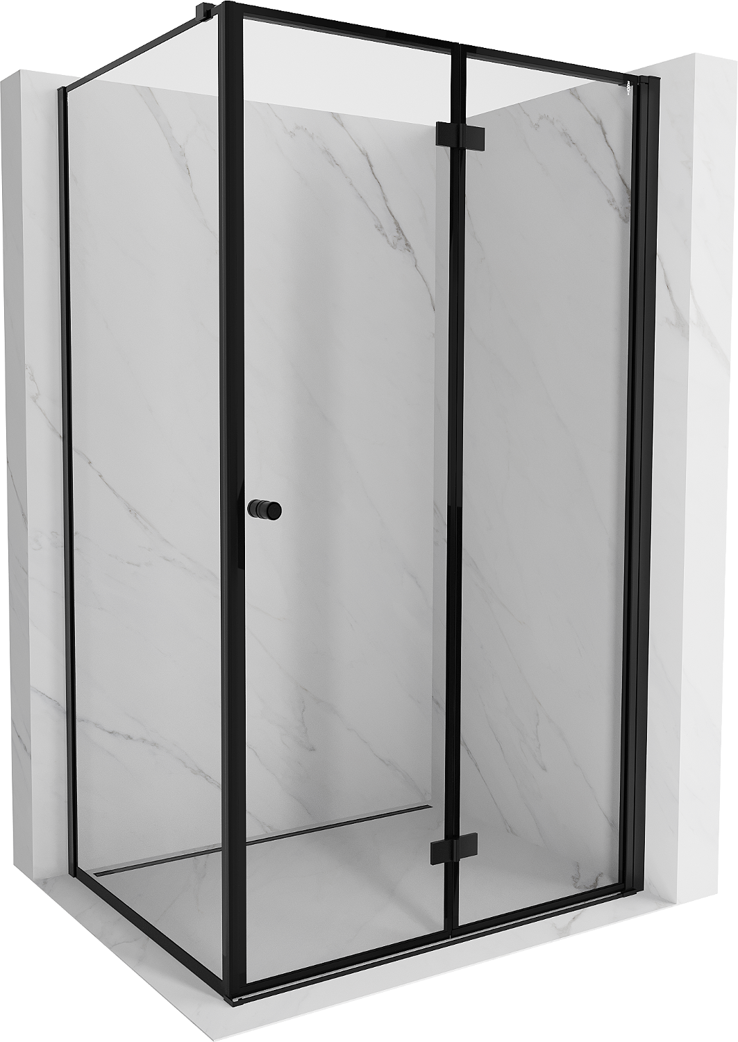 Mexen Mist-F πτυσσόμενο δεξιό ντους 110 x 75 cm, μαύρο πλαίσιο, μαύρο