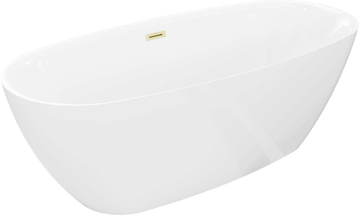 Mexen Luvo Slim μπανιέρα ελεύθερη 170 x 75 cm, λευκή, υπερχείλιση χρυσό