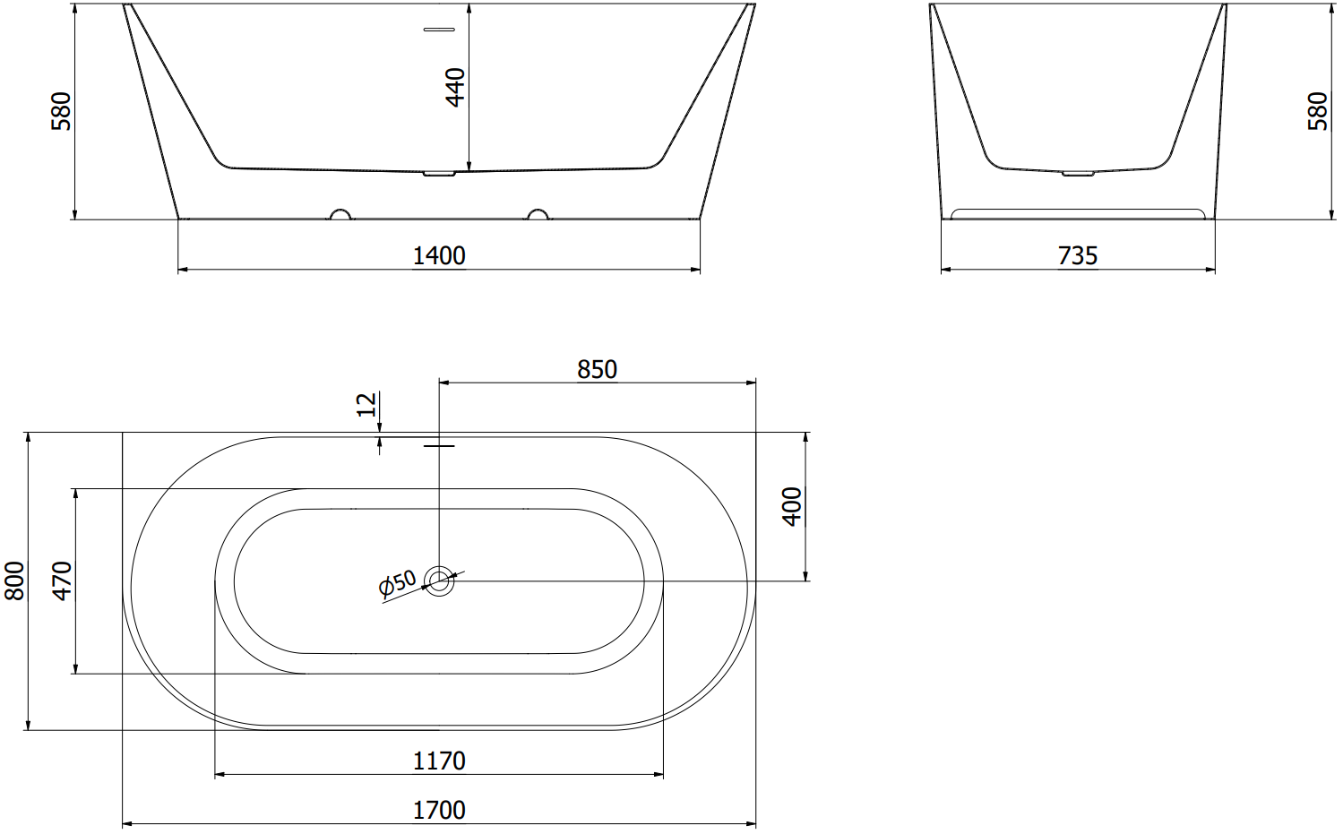 Mexen Oval Slim μπανιέρα ελεύθερης τοποθέτησης με επένδυση 170 x 80 cm,