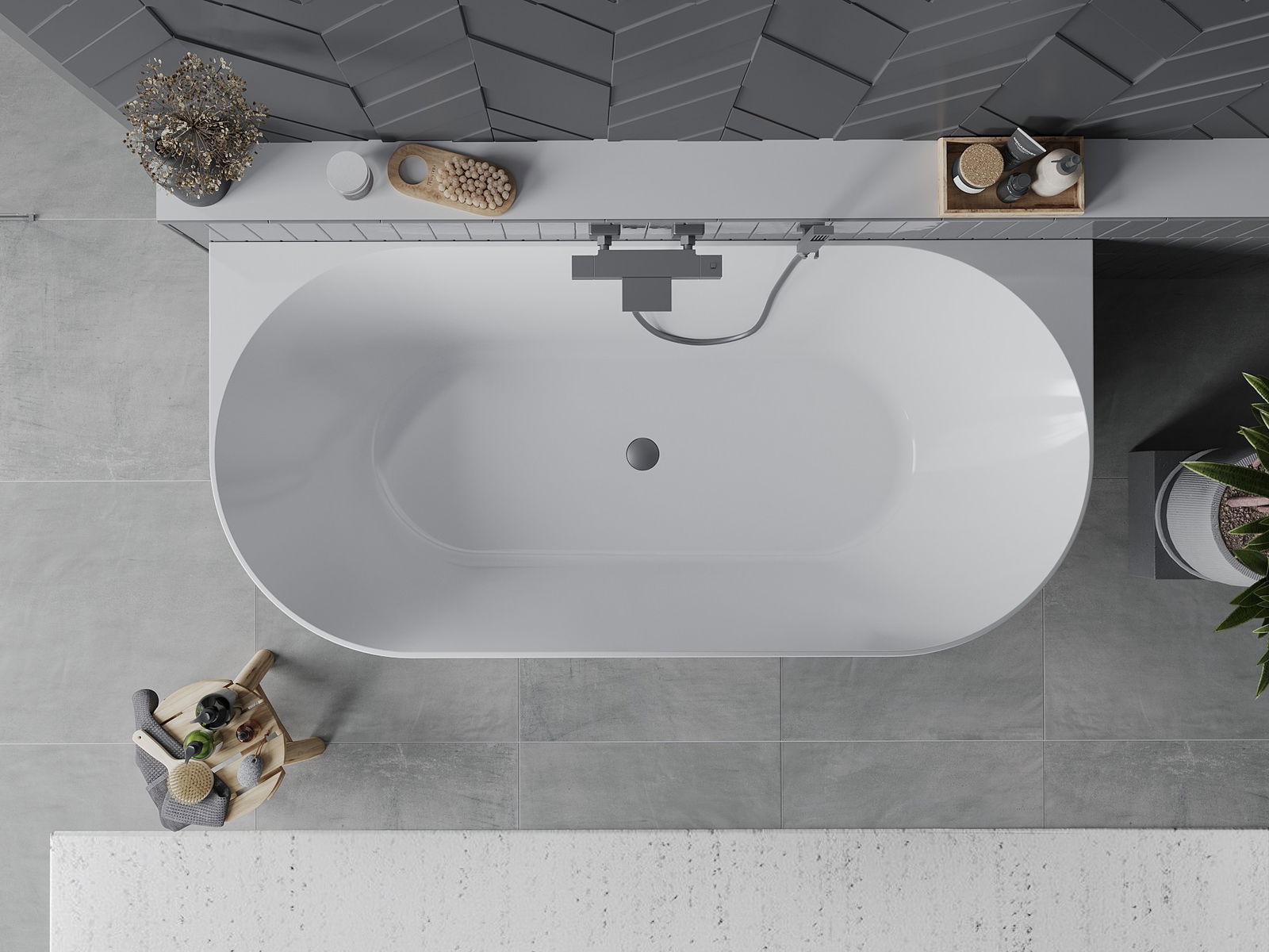 Mexen Oval Slim μπανιέρα ελεύθερης τοποθέτησης επίτοιχη 170 x 80 cm, λευκή/γκρι,