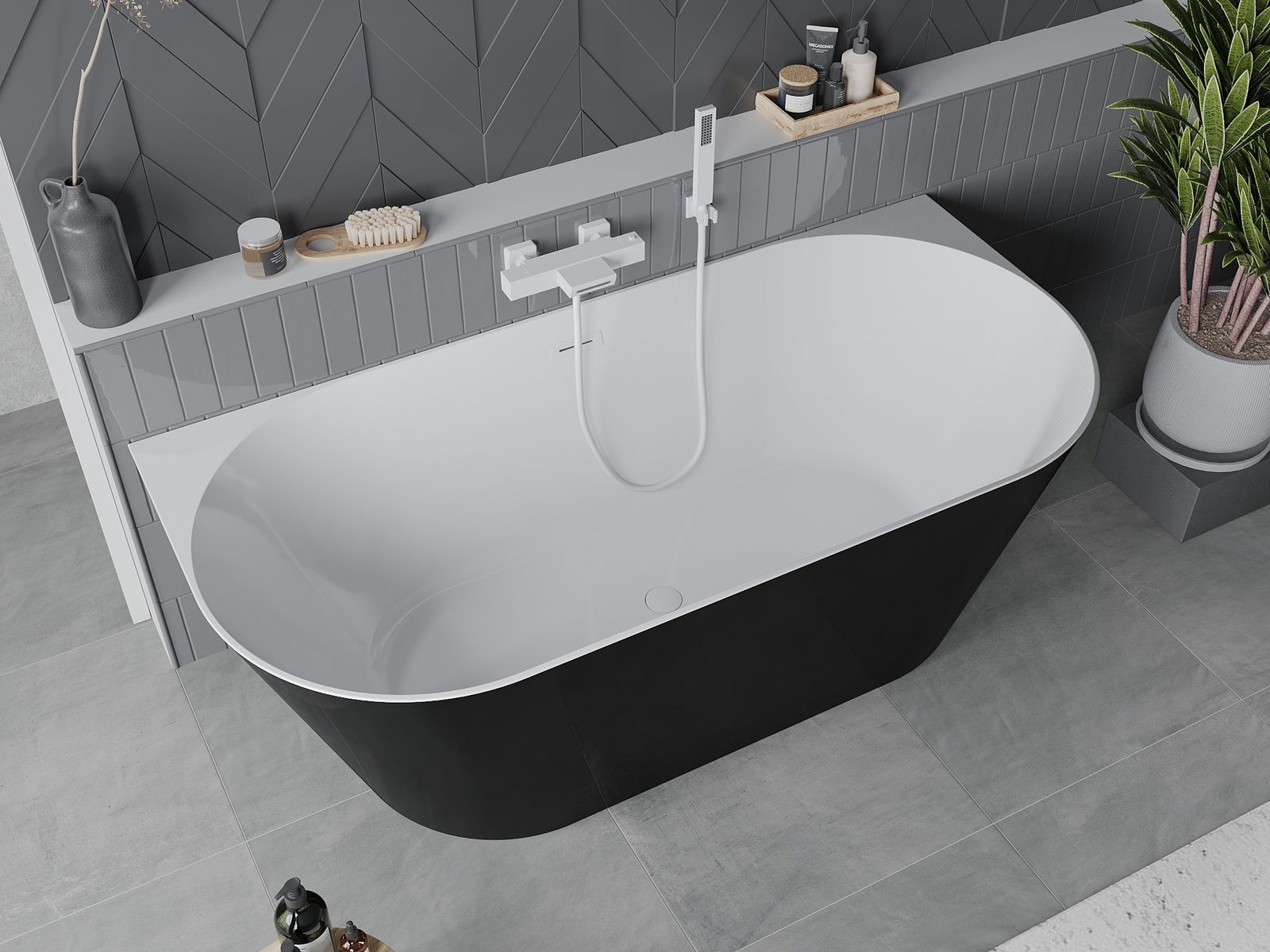 Mexen Oval Slim μπανιέρα αυτόνομη τοίχου 170 x 80 cm, λευκή/μαύρη, λευκή