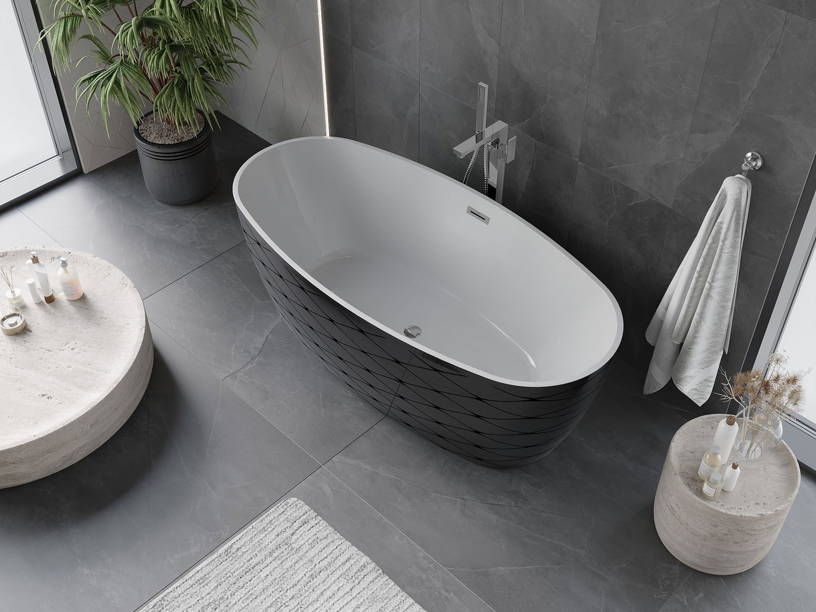 Mexen Olea Ελεύθερη μπανιέρα μοτίβο 170 x 80 cm, λευκή/μαύρη, χρώμιο