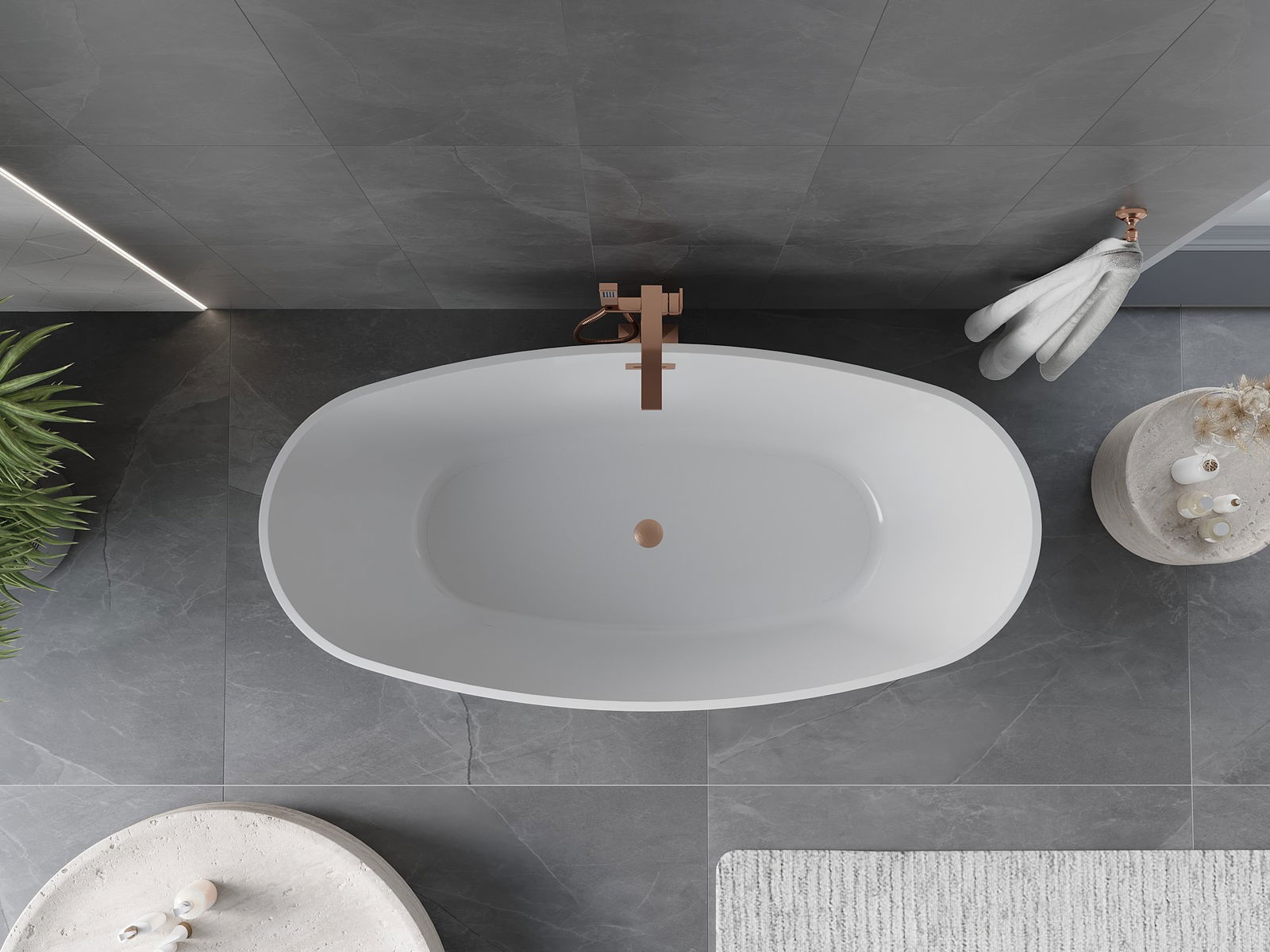 Mexen Olea ελεύθερη μπανιέρα σχέδιο 170 x 80 cm, λευκό/μαύρο, εκροή χαλκό