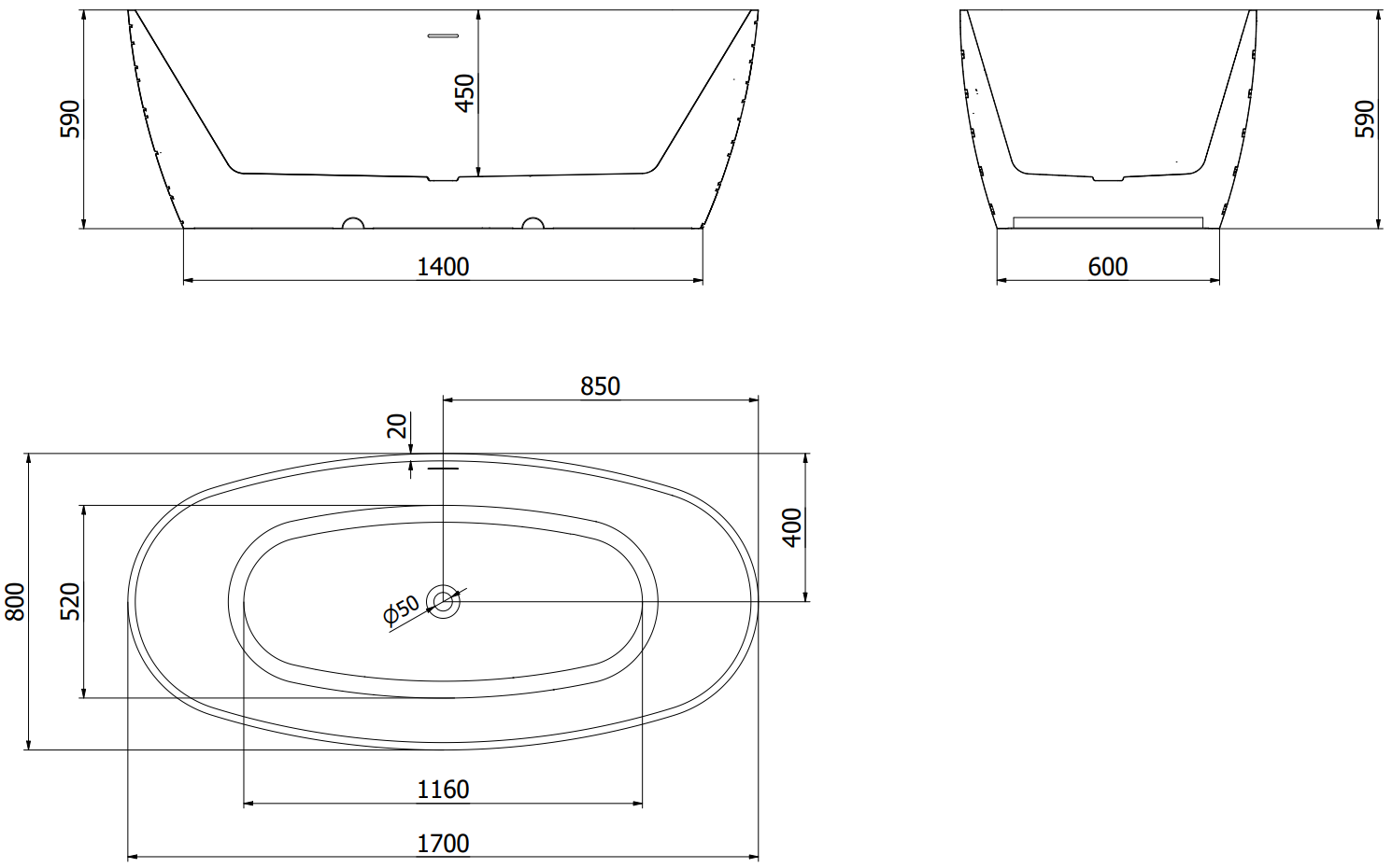 Mexen Olea μπανιέρα ελεύθερη εγκατάσταση σχέδιο 170 x 80 εκ, λευκή/μαύρη,