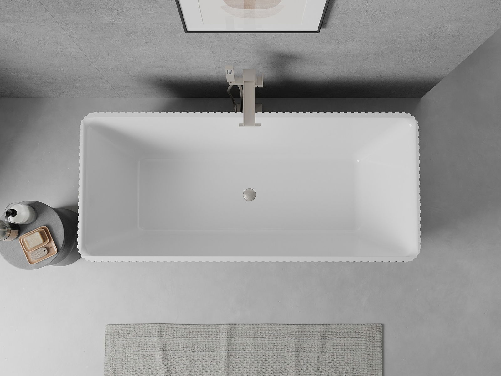 Mexen Nila λευκή ελεύθερη μπανιέρα με ραβδώσεις 170 x 75 εκ, βούρτσα νικελίου