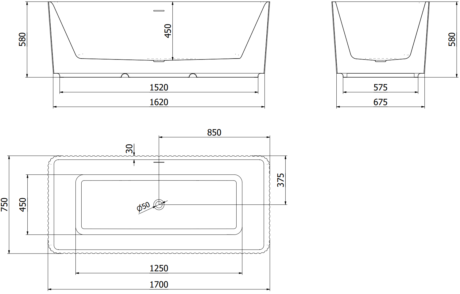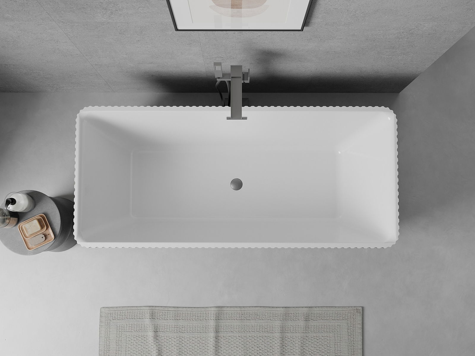 Mexen Nila μπανιέρα αυτόνομη με ραβδώσεις 170 x 75 cm, λευκό/μαύρο, υπερχείλιση