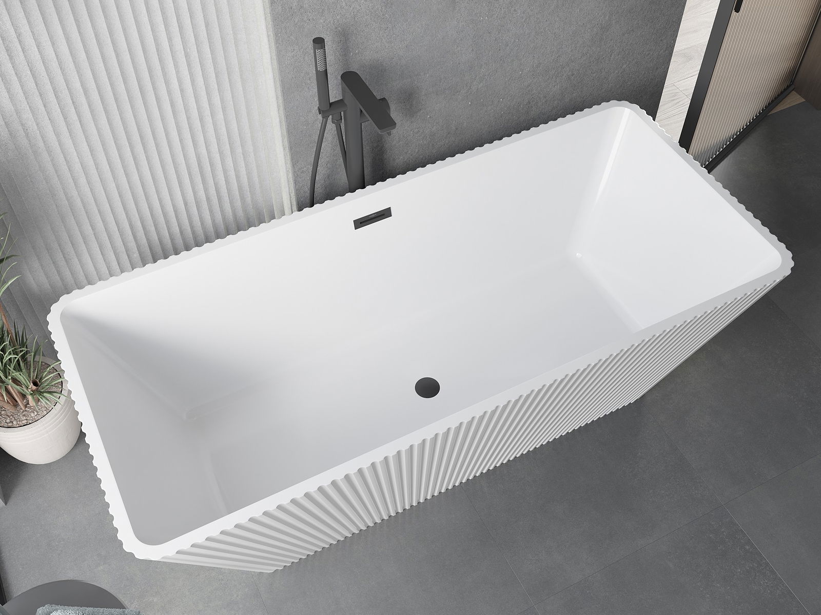 Mexen Tava μπανιέρα ελεύθερη ριγέ 170 x 75 cm, λευκή, υπερχείλιση μαύρη