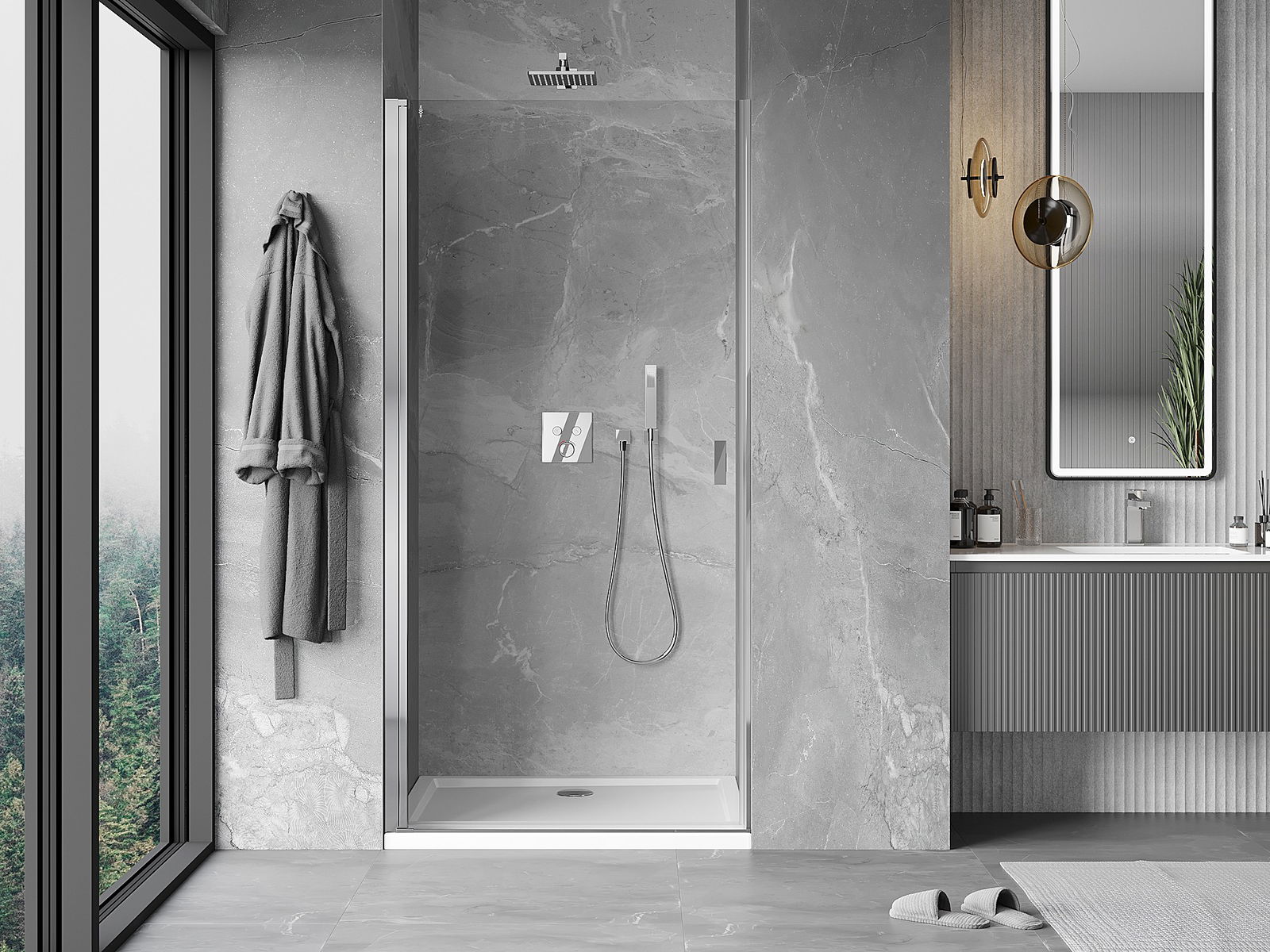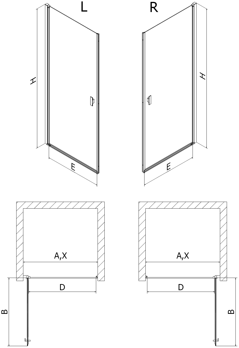 Χάρη στη χρήση ενός καθολικού συστήματος στήριξης, οι πόρτες ντους μπορούν να τοποθετηθούν είτε από τη δεξιά είτε από την αριστερή πλευρά, ανάλογα με τις ανάγκες. Έτσι μπορείτε να σχεδιάσετε με ευκολία ένα ντους προσαρμοσμένο στον χώρο του μπάνιου.