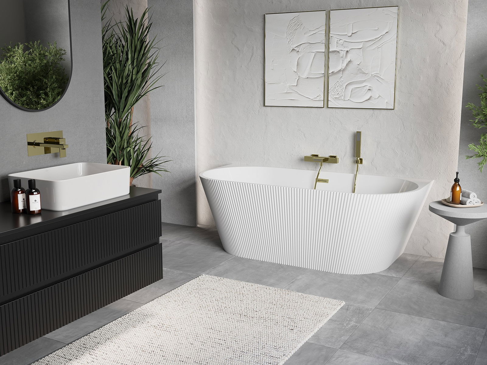 Mexen Oris λευκή χαραγμένη μπανιέρα ελεύθερης τοποθέτησης κοντά στον