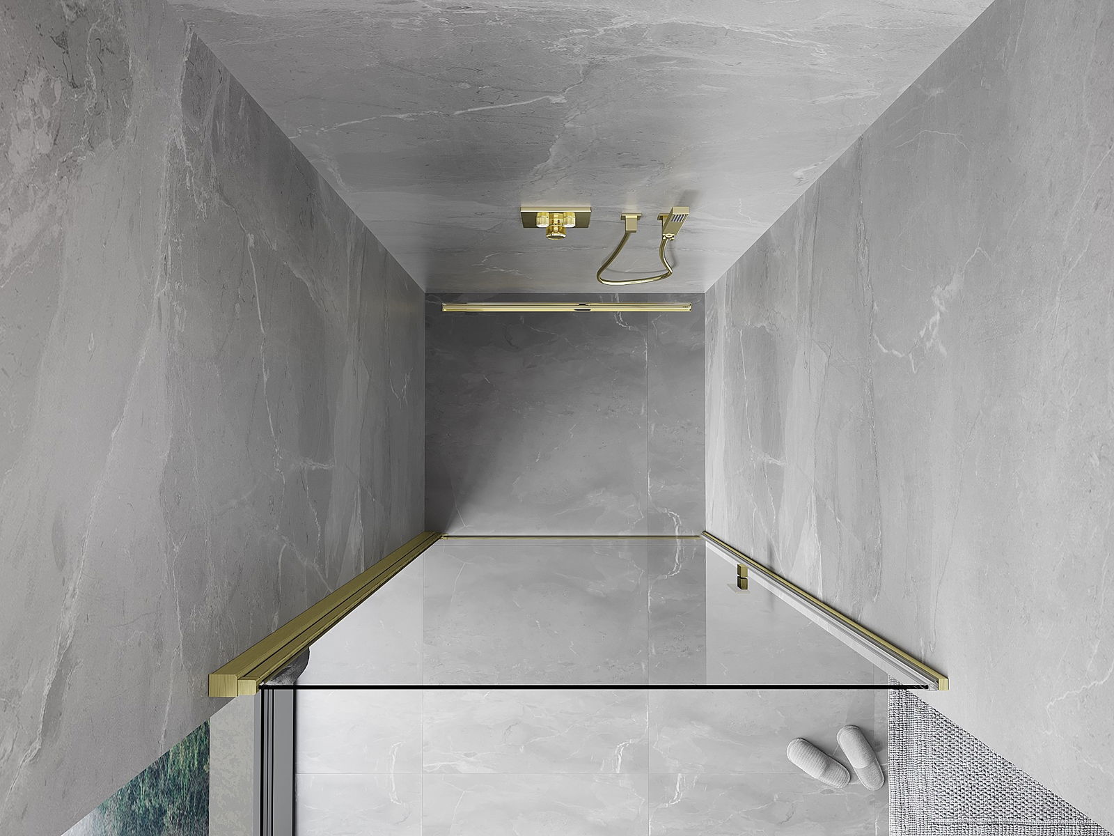 Mexen Mist-B πόρτα ντους ανοιγόμενη 95 cm, διαφανής, χρυσή βουρτσισμένη