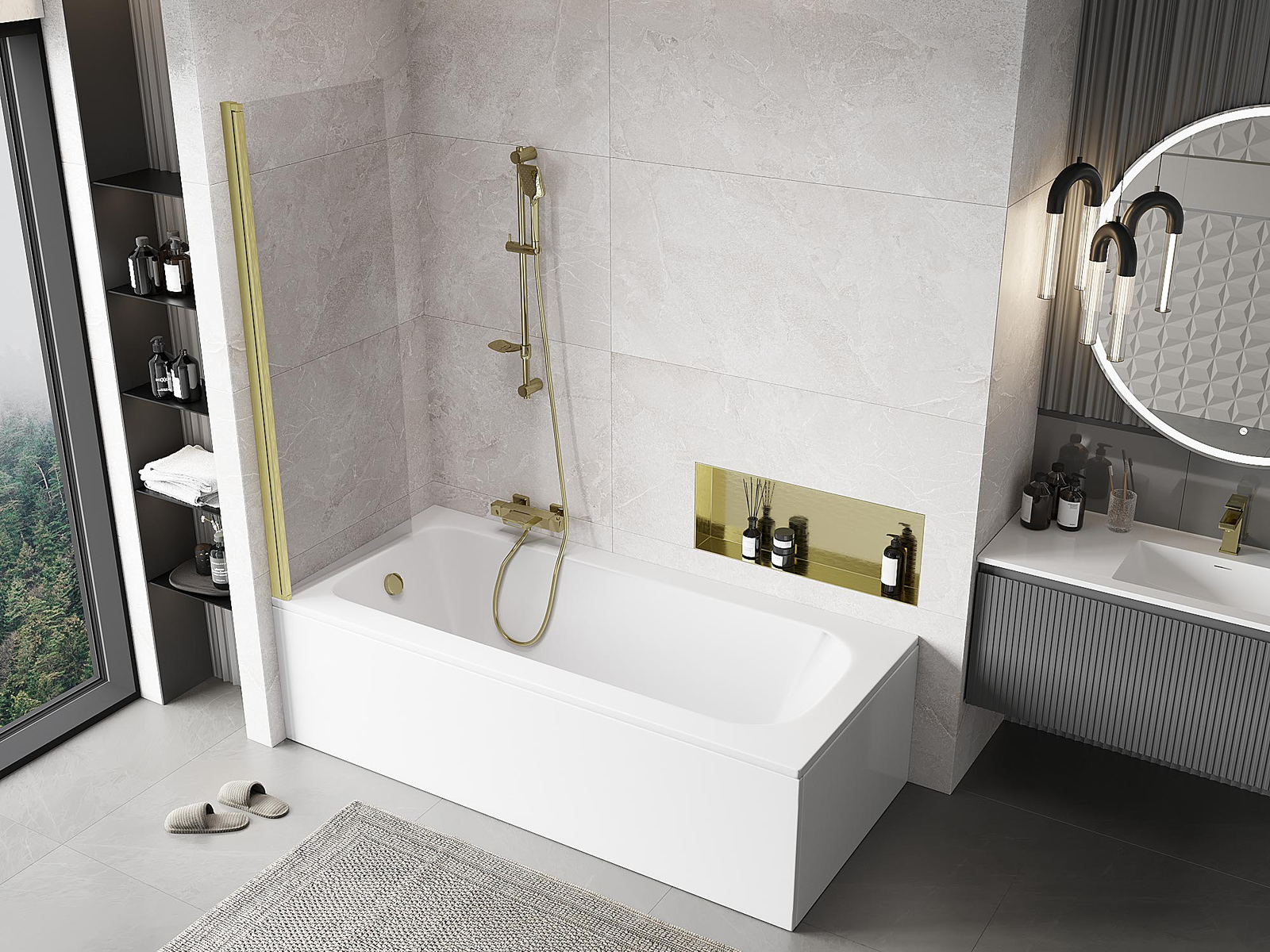 Mexen Mist παραβάν μπανιέρας 1-πτέρυγας 60 x 150 cm, διαφανές, χρυσό