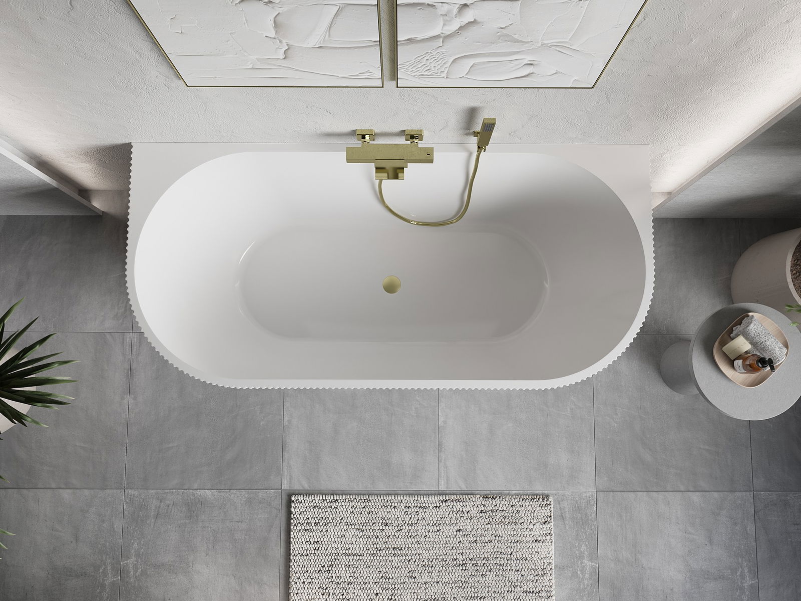 Mexen Oris ελεύθερη μπανιέρα τοίχου με ραβδώσεις 150 x 75 cm, λευκό/γκρι, χρυσή