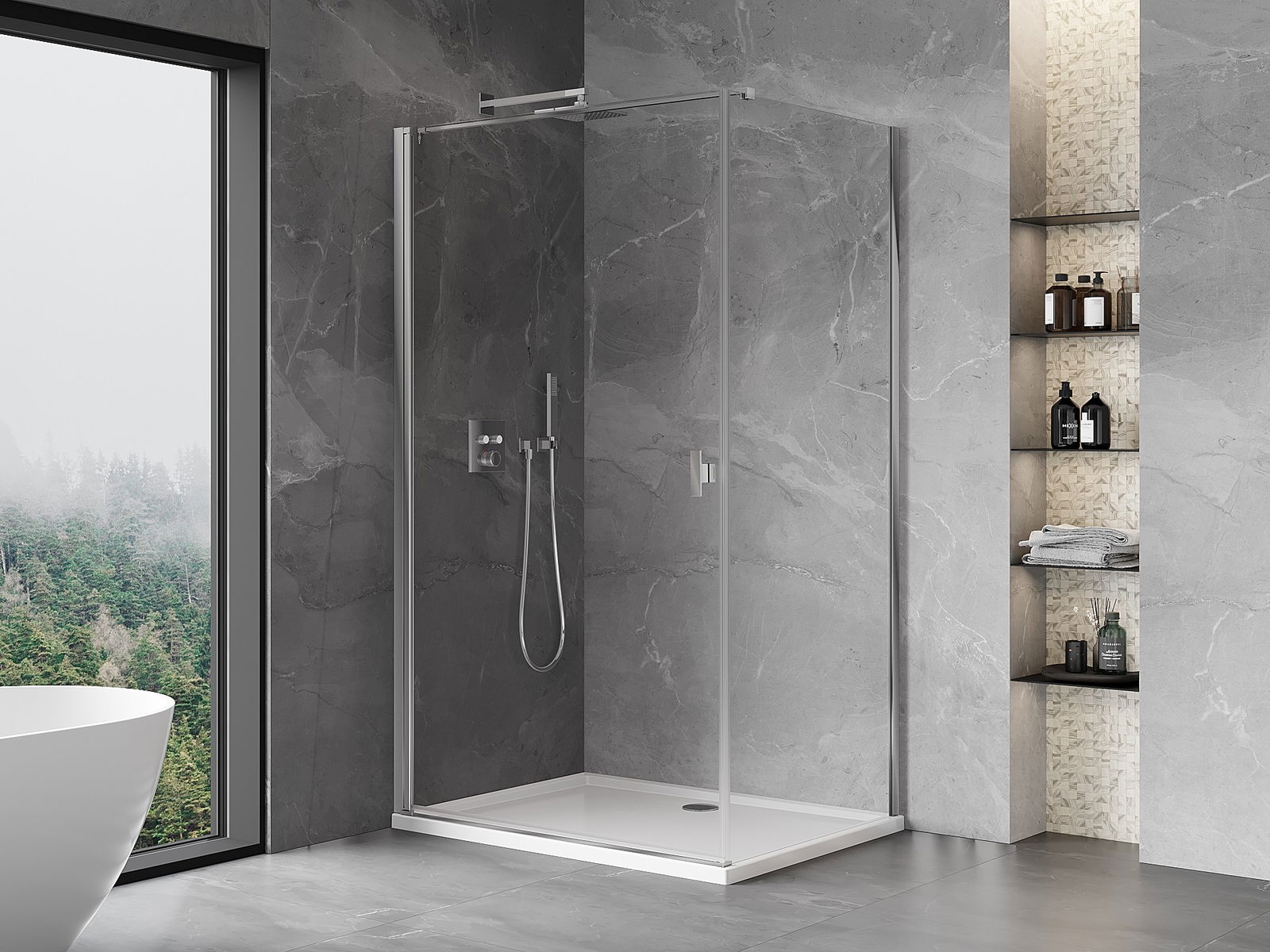 Χάρη στη χρήση ενός καθολικού συστήματος στήριξης, οι πόρτες ντους μπορούν να τοποθετηθούν είτε από τη δεξιά είτε από την αριστερή πλευρά, ανάλογα με τις ανάγκες. Έτσι μπορείτε να σχεδιάσετε με ευκολία ένα ντους προσαρμοσμένο στον χώρο του μπάνιου.