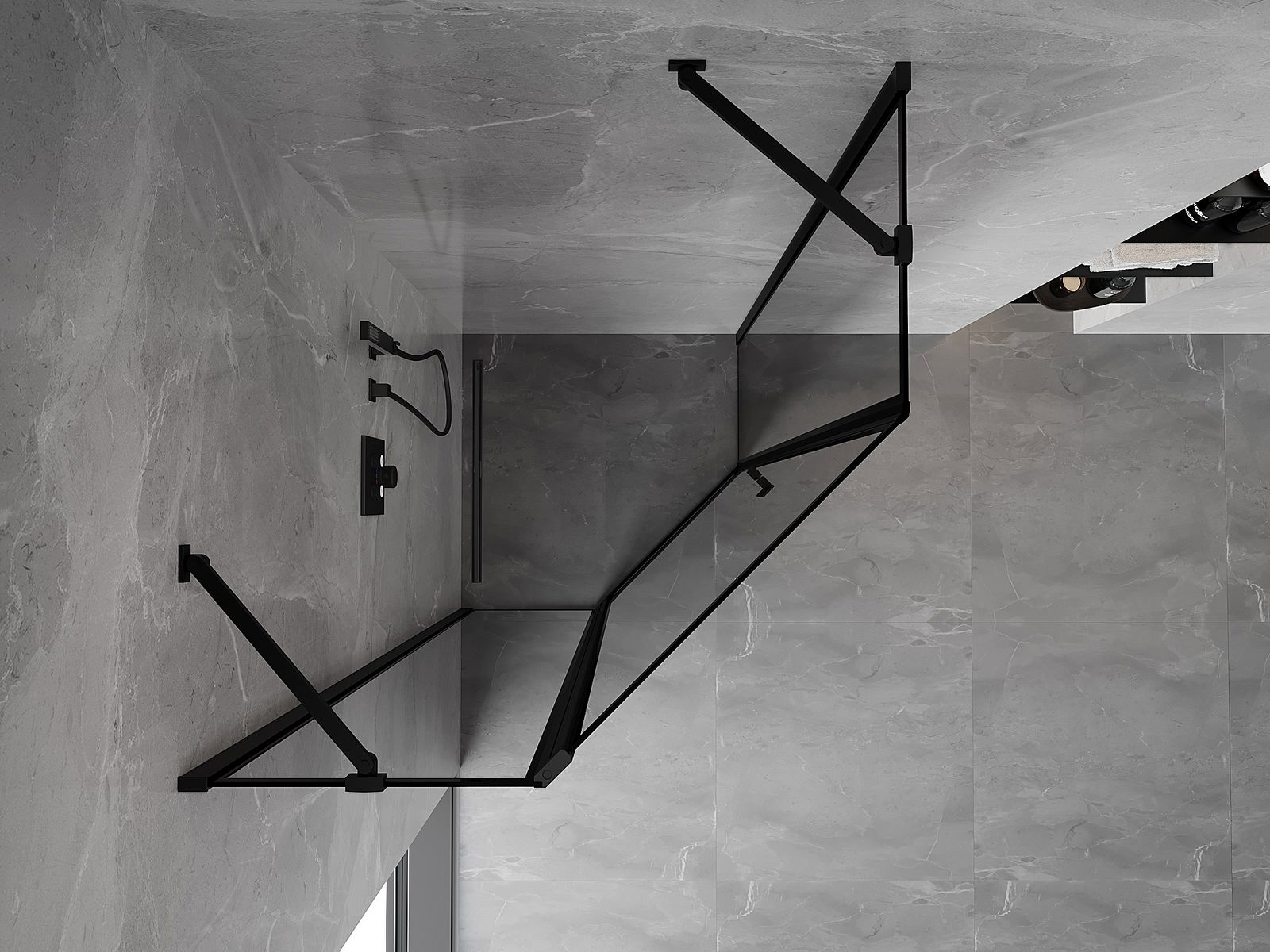 Mexen Mist πεντάγωνη ντουζιέρα ανοιγόμενη αριστερή 90 x 90 cm, μαύρο πλαίσιο,