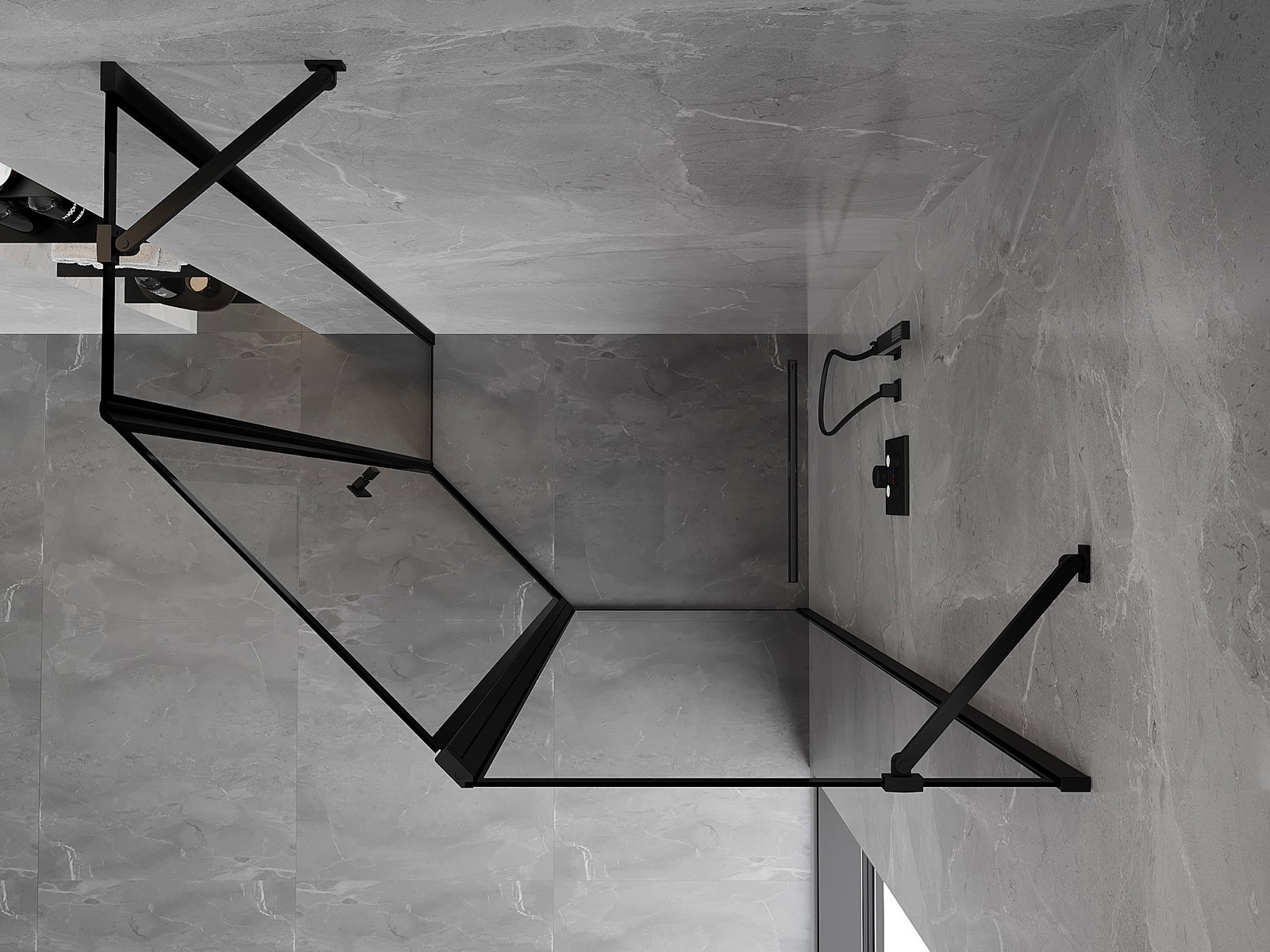 Mexen Mist ασύμμετρη δεξιά καμπίνα ντους πενταγωνική, 90 x 80 cm, μαύρο