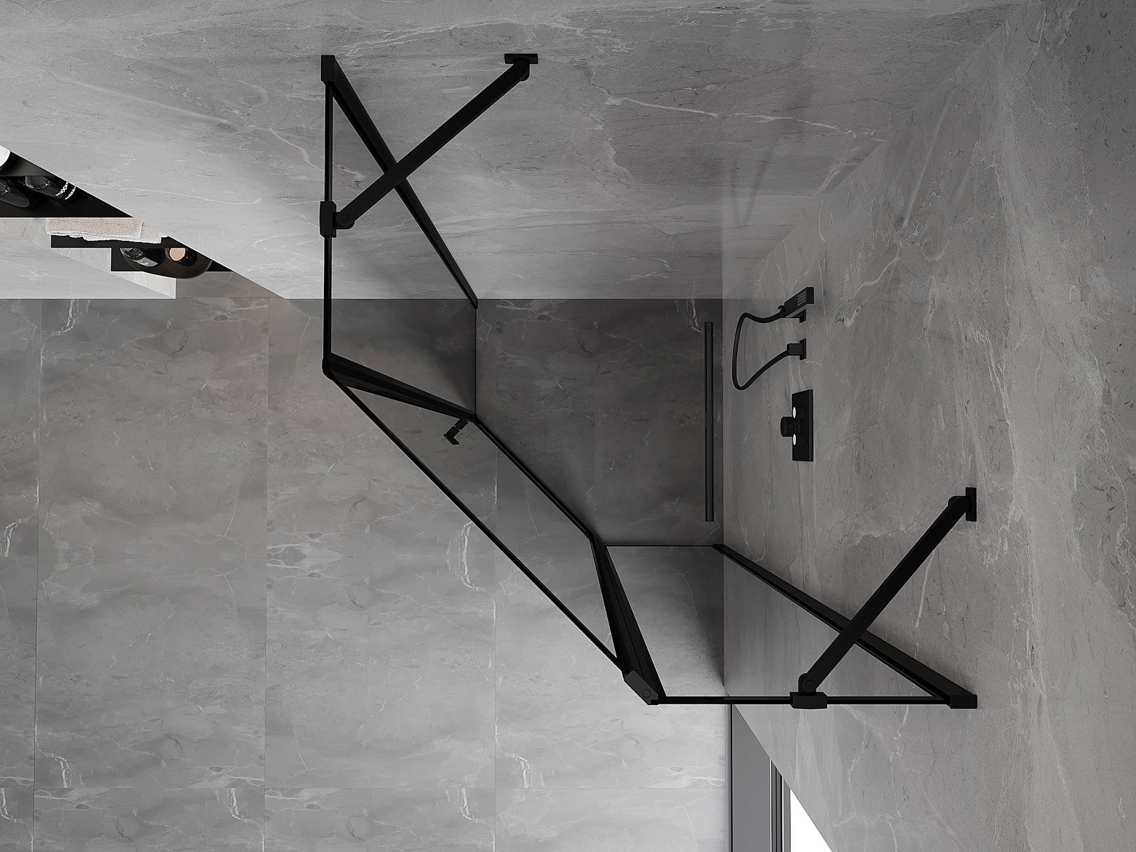 Mexen Mist ντουζιέρα πενταγωνική δεξιά 100 x 100 cm, μαύρο πλαίσιο, μαύρη