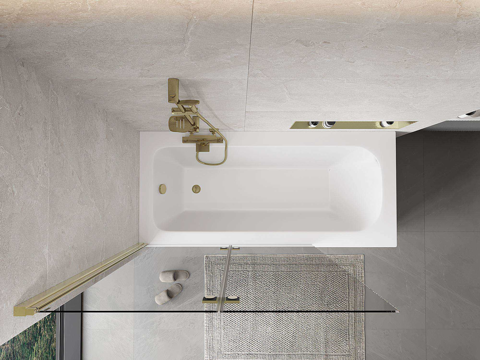 Ο διαχωριστικό κατασκευασμένο από δύο φτερά με δυνατότητα αναδίπλωσης. Αυτή η λύση επιτρέπει την εξοικονόμηση περισσότερου χώρου στο μπάνιο και παρέχει τη δυνατότητα ελεύθερης χρήσης του υπόλοιπου χώρου όταν δεν χρησιμοποιούμε την περιοχή κολύμβησης.