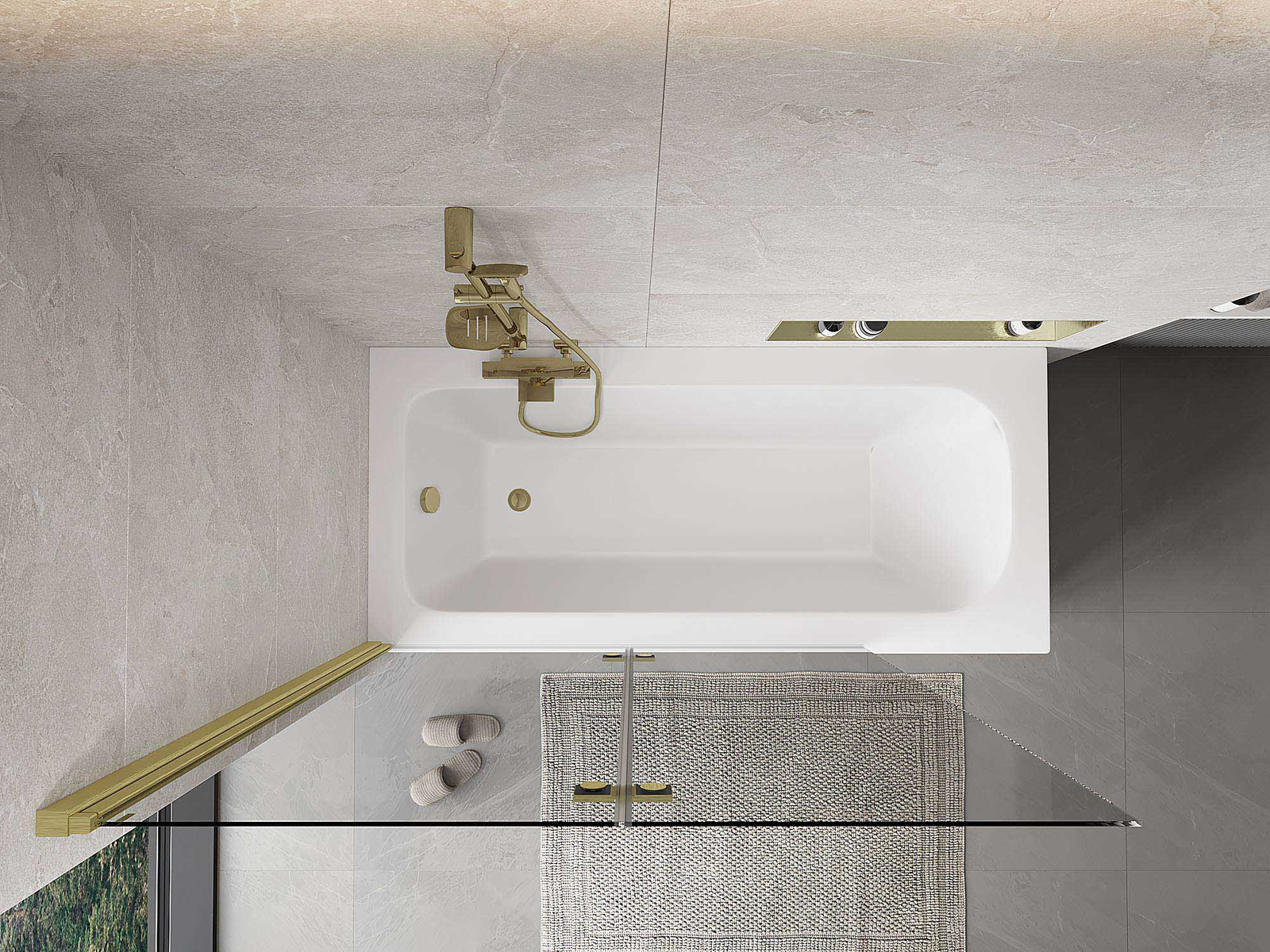 Ο διαχωριστικό κατασκευασμένο από δύο φτερά με δυνατότητα αναδίπλωσης. Αυτή η λύση επιτρέπει την εξοικονόμηση περισσότερου χώρου στο μπάνιο και παρέχει τη δυνατότητα ελεύθερης χρήσης του υπόλοιπου χώρου όταν δεν χρησιμοποιούμε την περιοχή κολύμβησης.