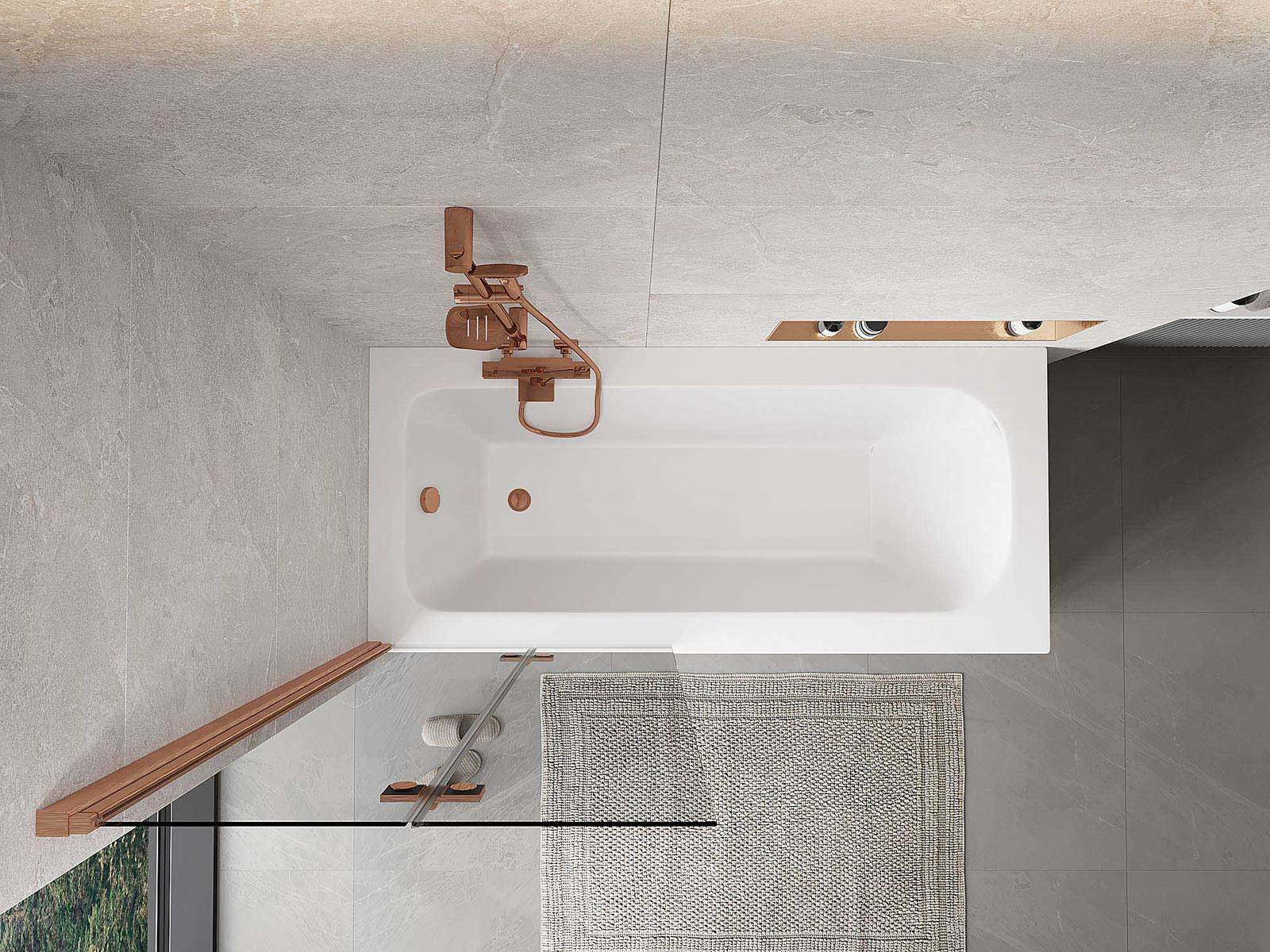 Ο διαχωριστικό κατασκευασμένο από δύο φτερά με δυνατότητα αναδίπλωσης. Αυτή η λύση επιτρέπει την εξοικονόμηση περισσότερου χώρου στο μπάνιο και παρέχει τη δυνατότητα ελεύθερης χρήσης του υπόλοιπου χώρου όταν δεν χρησιμοποιούμε την περιοχή κολύμβησης.