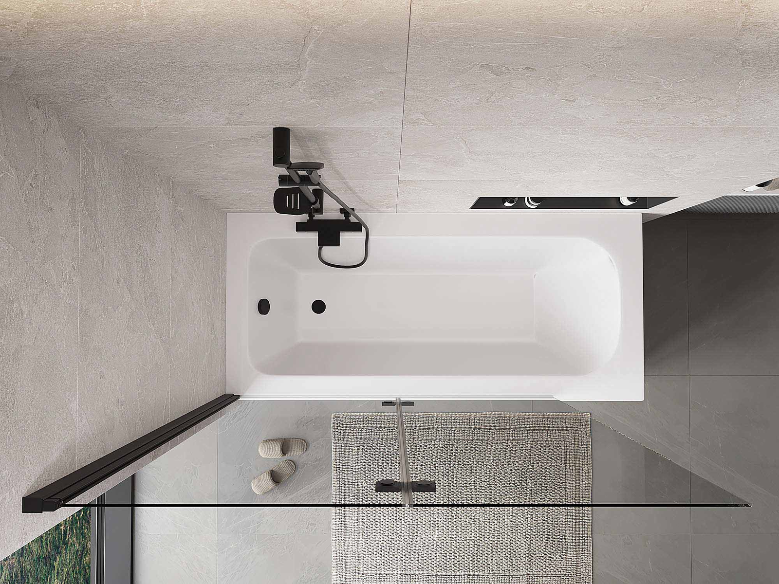 Ο διαχωριστικό κατασκευασμένο από δύο φτερά με δυνατότητα αναδίπλωσης. Αυτή η λύση επιτρέπει την εξοικονόμηση περισσότερου χώρου στο μπάνιο και παρέχει τη δυνατότητα ελεύθερης χρήσης του υπόλοιπου χώρου όταν δεν χρησιμοποιούμε την περιοχή κολύμβησης.