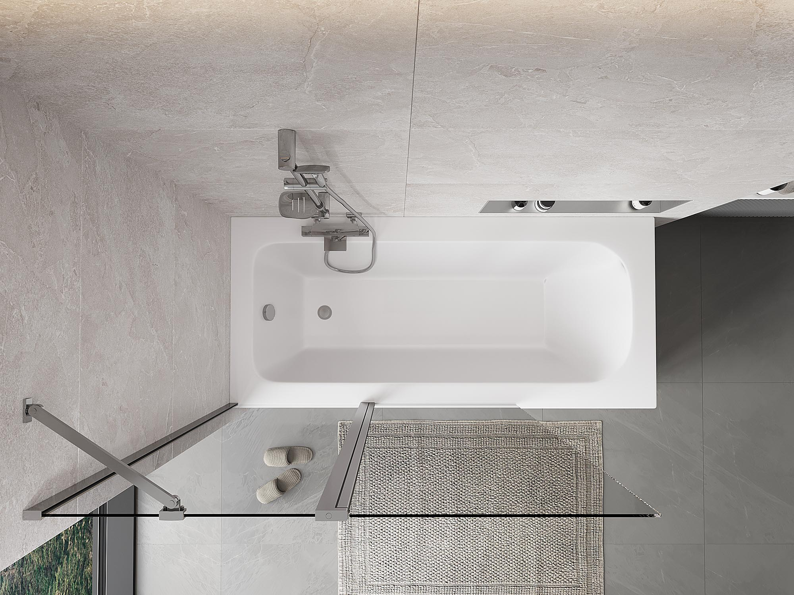 Ο διαχωριστικό κατασκευασμένο από δύο φτερά με δυνατότητα αναδίπλωσης. Αυτή η λύση επιτρέπει την εξοικονόμηση περισσότερου χώρου στο μπάνιο και παρέχει τη δυνατότητα ελεύθερης χρήσης του υπόλοιπου χώρου όταν δεν χρησιμοποιούμε την περιοχή κολύμβησης.