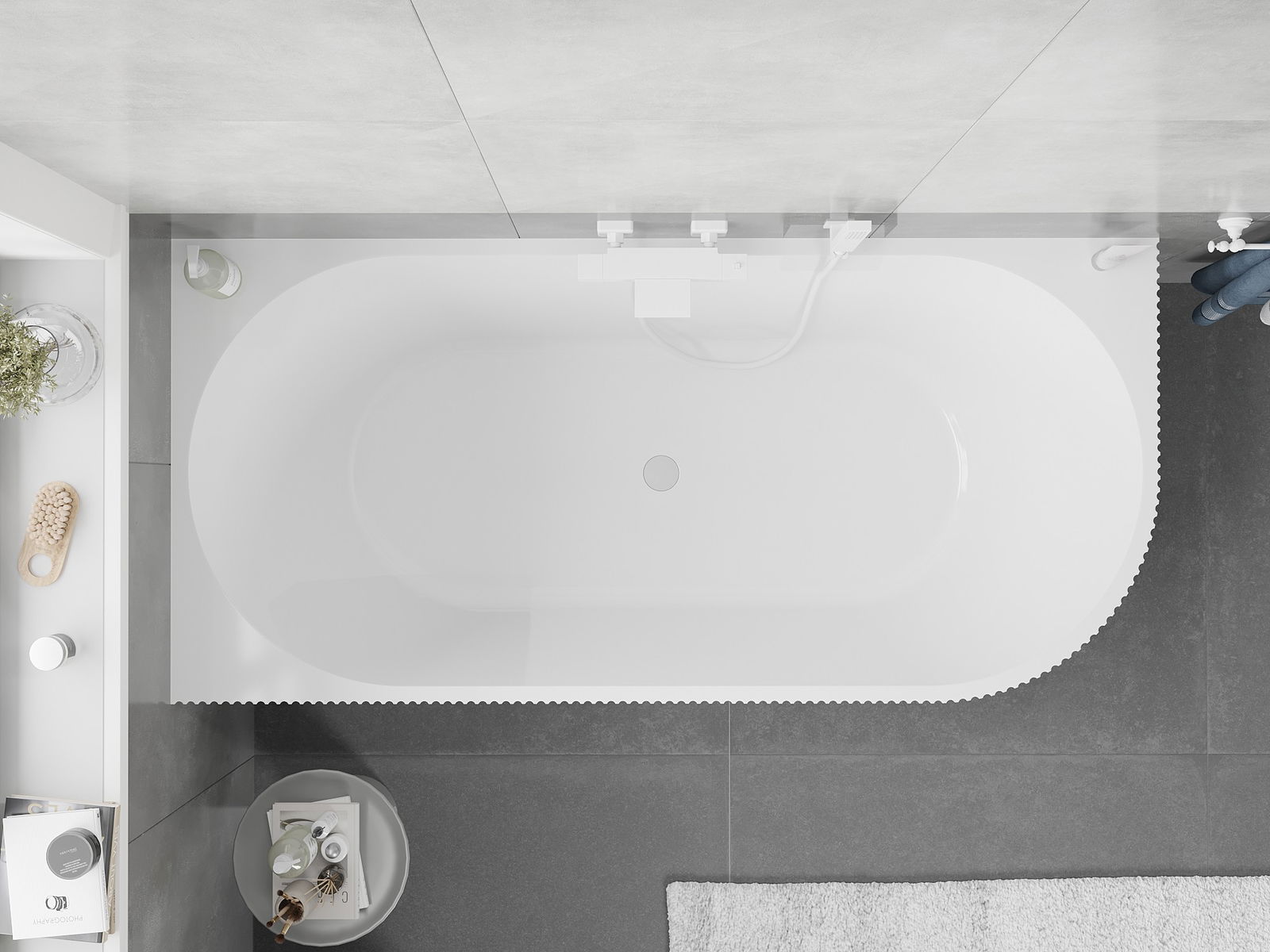 Mexen Silo ελεύθερη μπανιέρα γωνιακή αριστερή ριγέ 150 x 75 cm, λευκή, λευκή