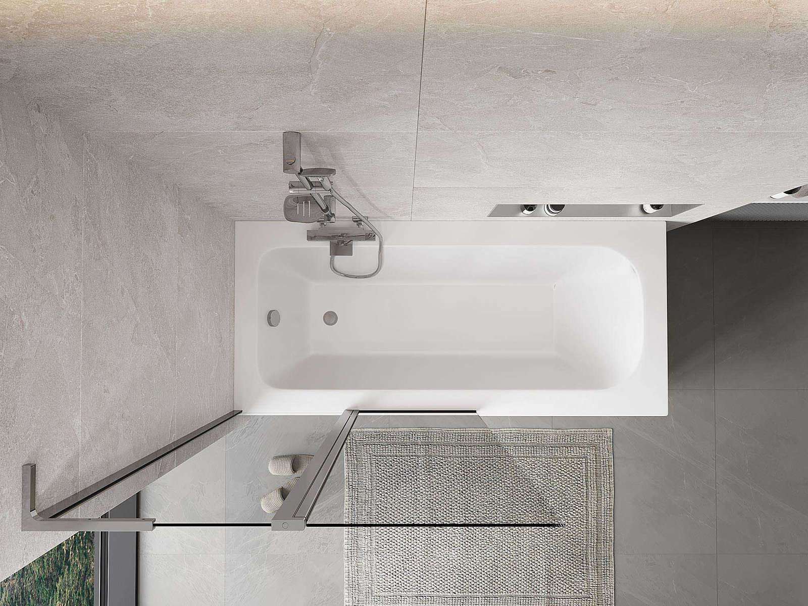 Ο διαχωριστικό κατασκευασμένο από δύο φτερά με δυνατότητα αναδίπλωσης. Αυτή η λύση επιτρέπει την εξοικονόμηση περισσότερου χώρου στο μπάνιο και παρέχει τη δυνατότητα ελεύθερης χρήσης του υπόλοιπου χώρου όταν δεν χρησιμοποιούμε την περιοχή κολύμβησης.