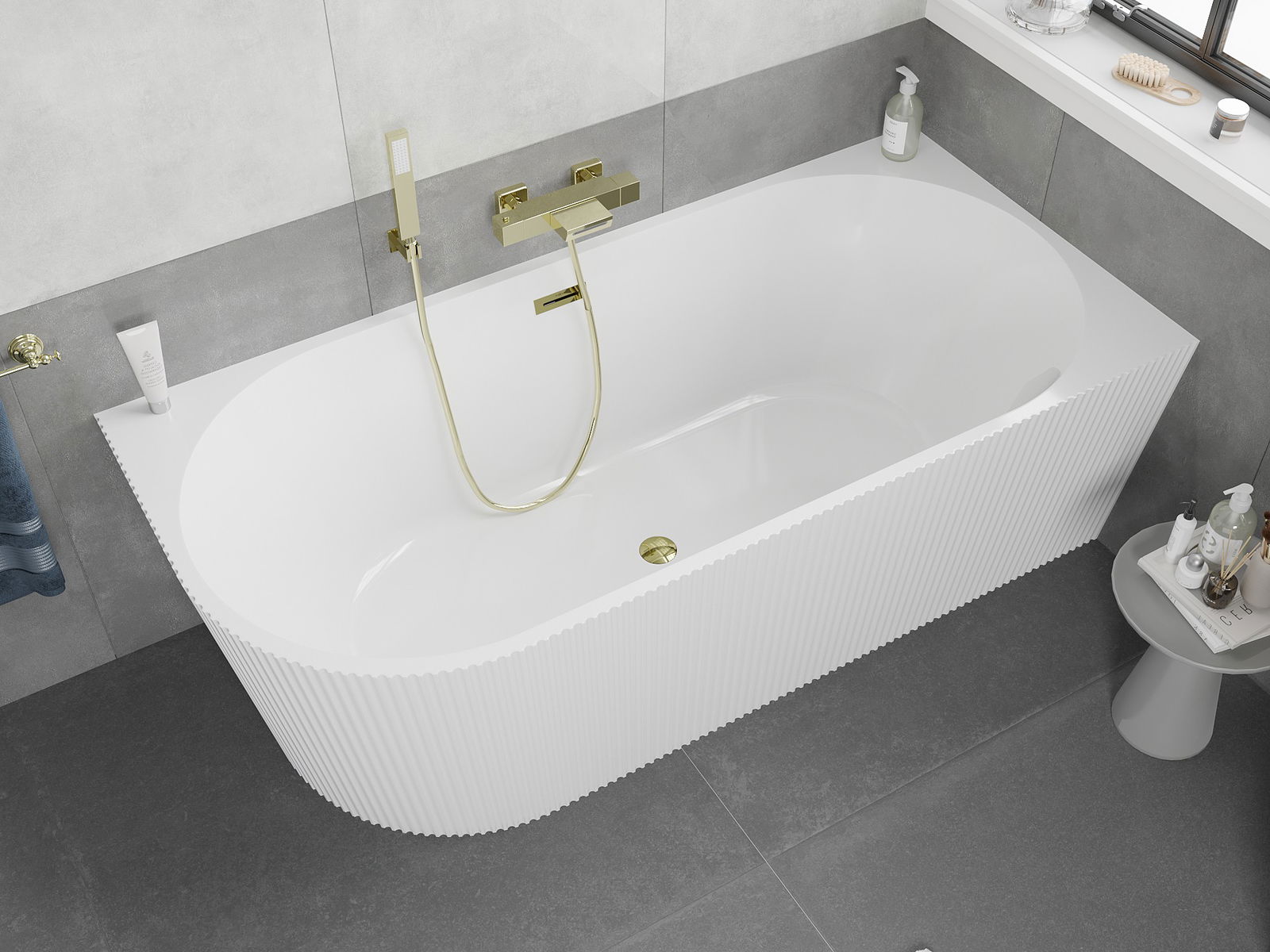 Mexen Silo δεξιά γωνιακή μπανιέρα αυτόνομου τύπου ραβδωτή 170 x 80 cm, λευκή,