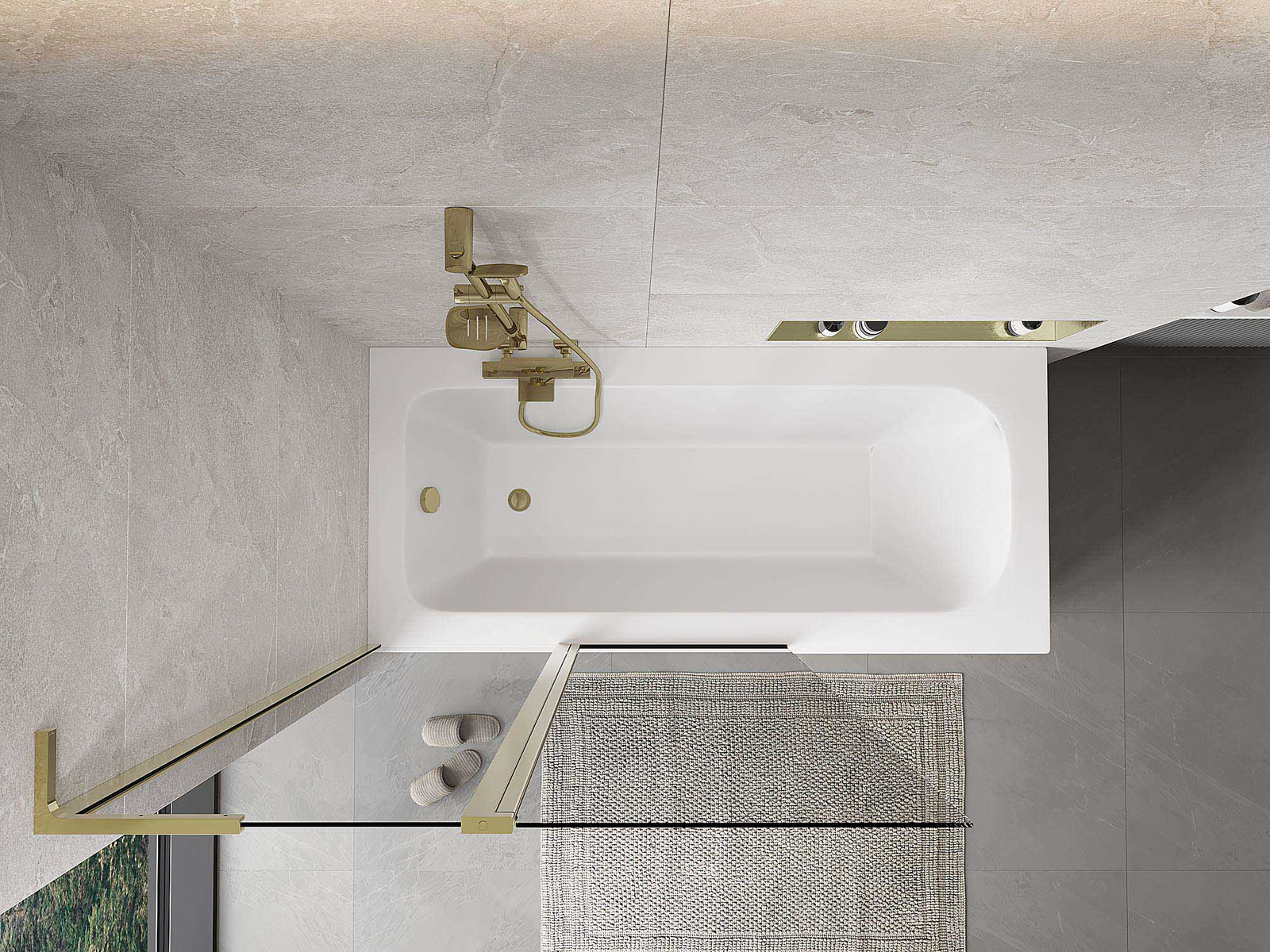 Ο διαχωριστικό κατασκευασμένο από δύο φτερά με δυνατότητα αναδίπλωσης. Αυτή η λύση επιτρέπει την εξοικονόμηση περισσότερου χώρου στο μπάνιο και παρέχει τη δυνατότητα ελεύθερης χρήσης του υπόλοιπου χώρου όταν δεν χρησιμοποιούμε την περιοχή κολύμβησης.