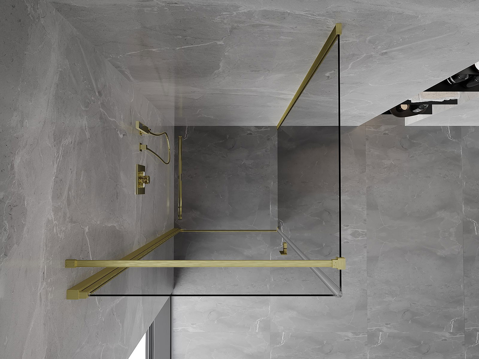 Mexen Mist-B καμπίνα ντους ανοιγόμενη 95 x 95 cm, διάφανη, χρυσό βουρτσισμένο