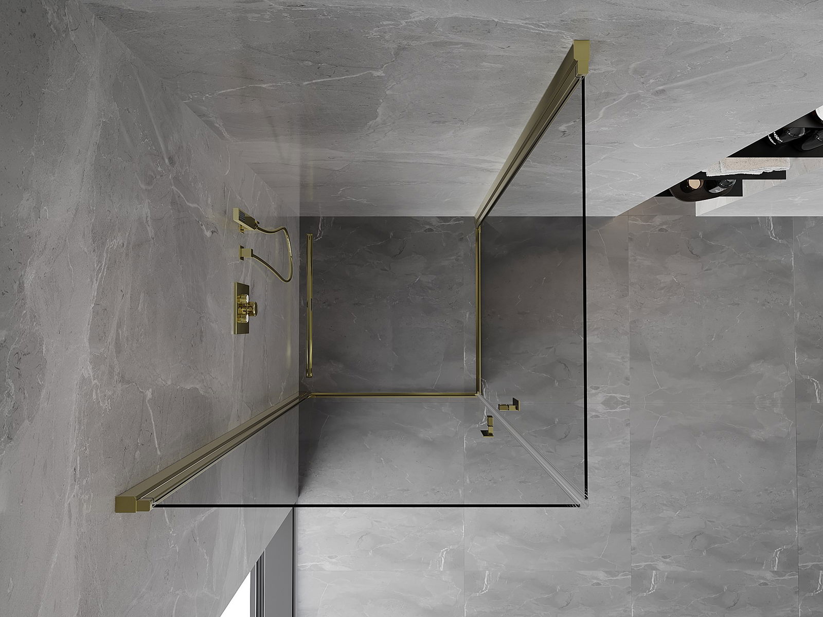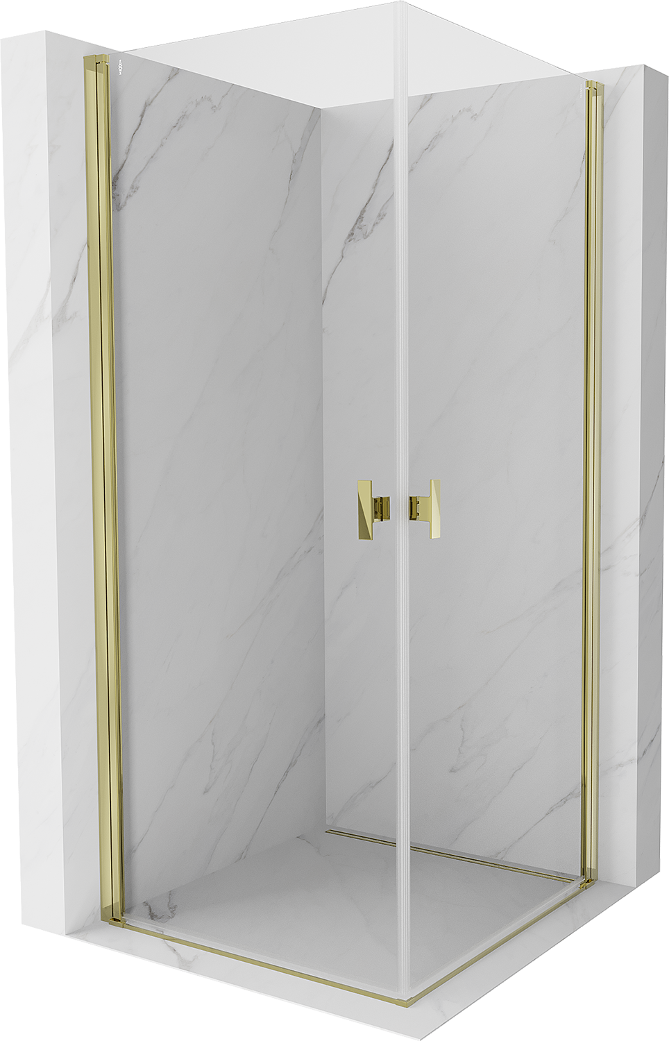 Mexen Mist-B Διπλή καμπίνα ντους με ανοιγόμενη πόρτα 90 x 90 cm, διαφανής, χρυσή
