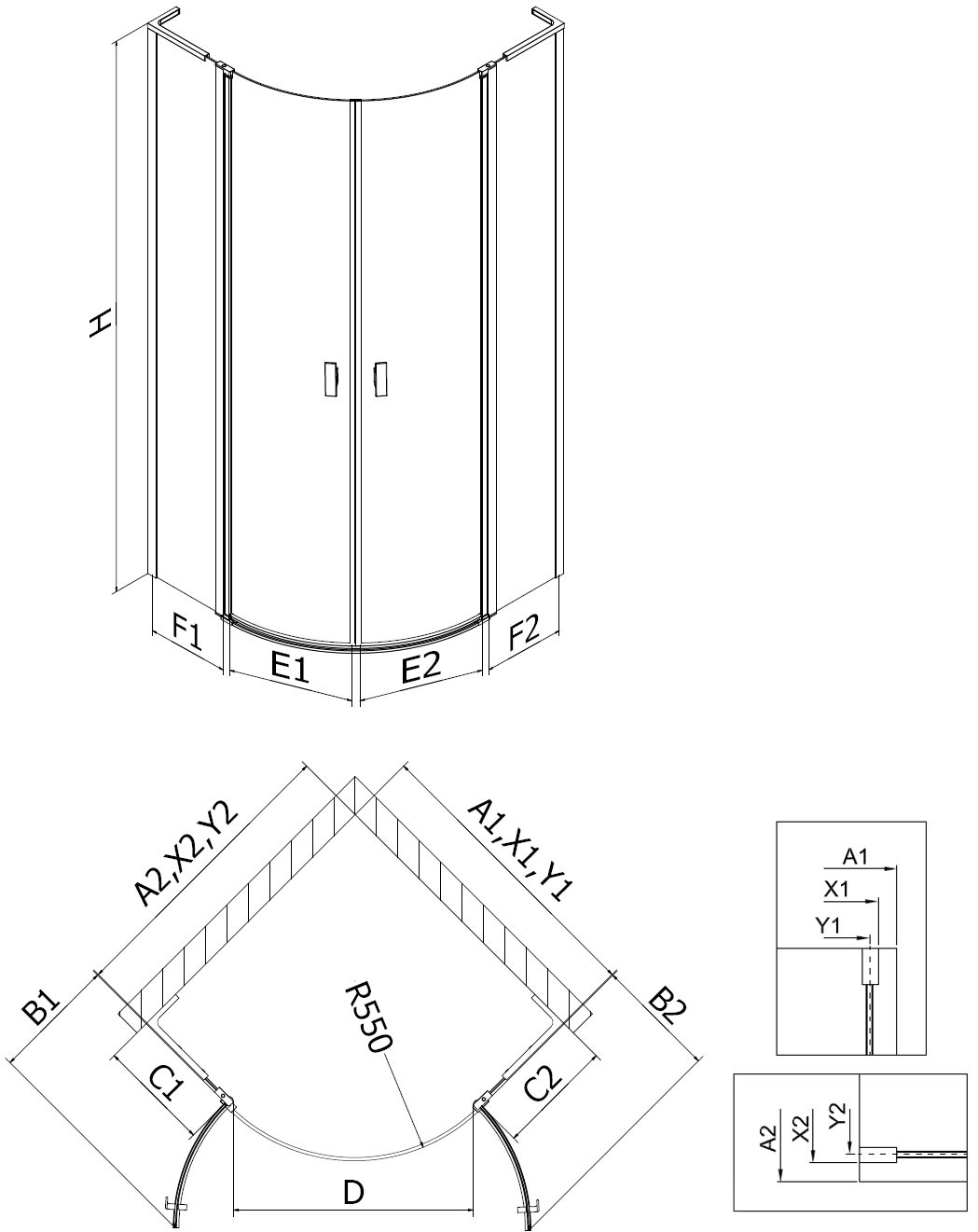 Οι πόρτες ανοιγόμενες επιτρέπουν τη μέγιστη ελευθερία κατά τη χρήση. Διαθέτουν ισχυρούς μεντεσέδες κατασκευασμένους από ανθεκτικό υλικό, που δεν δημιουργούν δυσκολίες στη διατήρηση της καθαριότητας και επιτρέπουν εύκολη πρόσβαση στο εσωτερικό της καμπίνας.