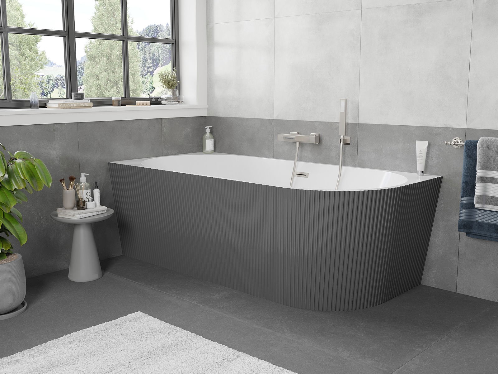 Mexen Silo Γωνιακή αριστερή ελεύθερη μπανιέρα με ραβδώσεις 150 x 75 cm,