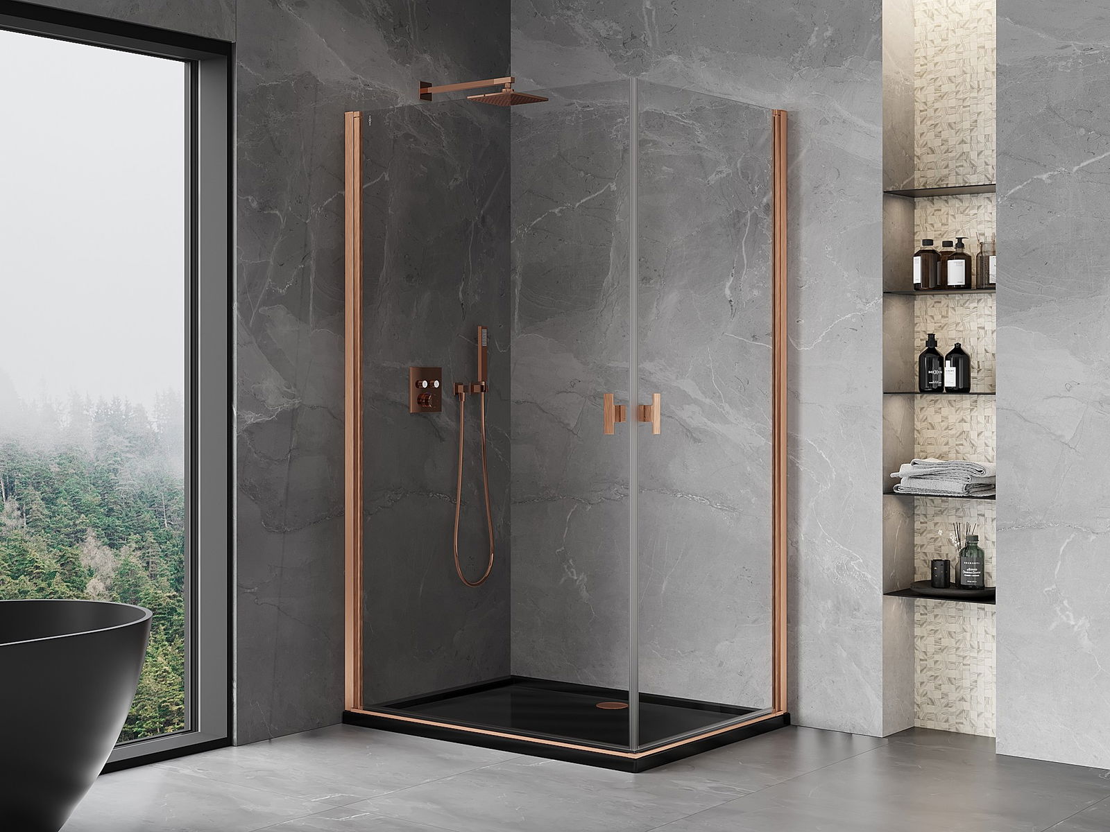 Mexen Rio τετράγωνη καμπίνα ντους 90 x 90 εκ., διάφανη, μαύρη - 860-090-090-70-00