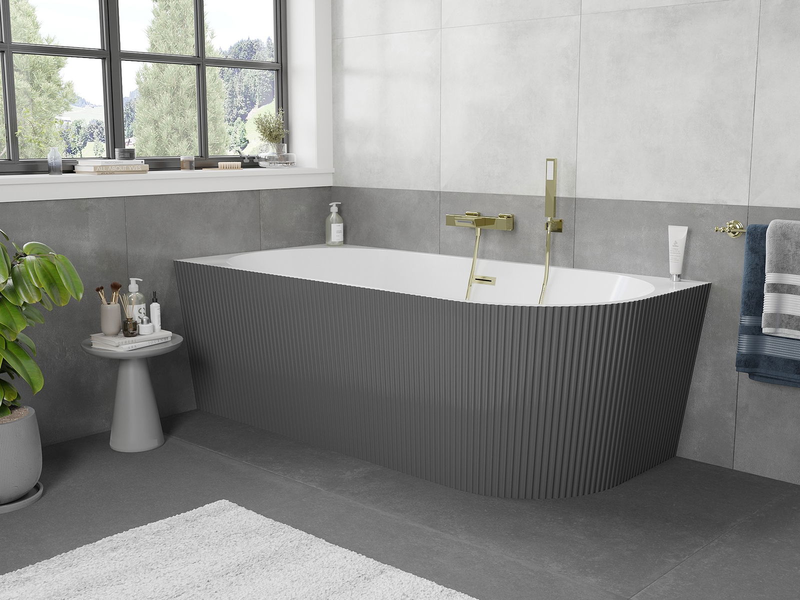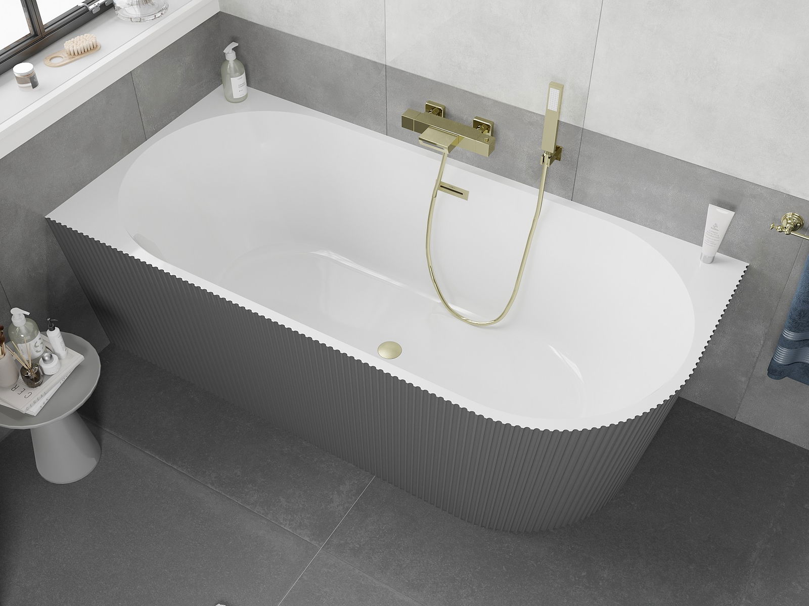 Mexen Silo γωνιακή αριστερή ανεξάρτητη μπανιέρα με ραβδώσεις 170 x 80 cm,