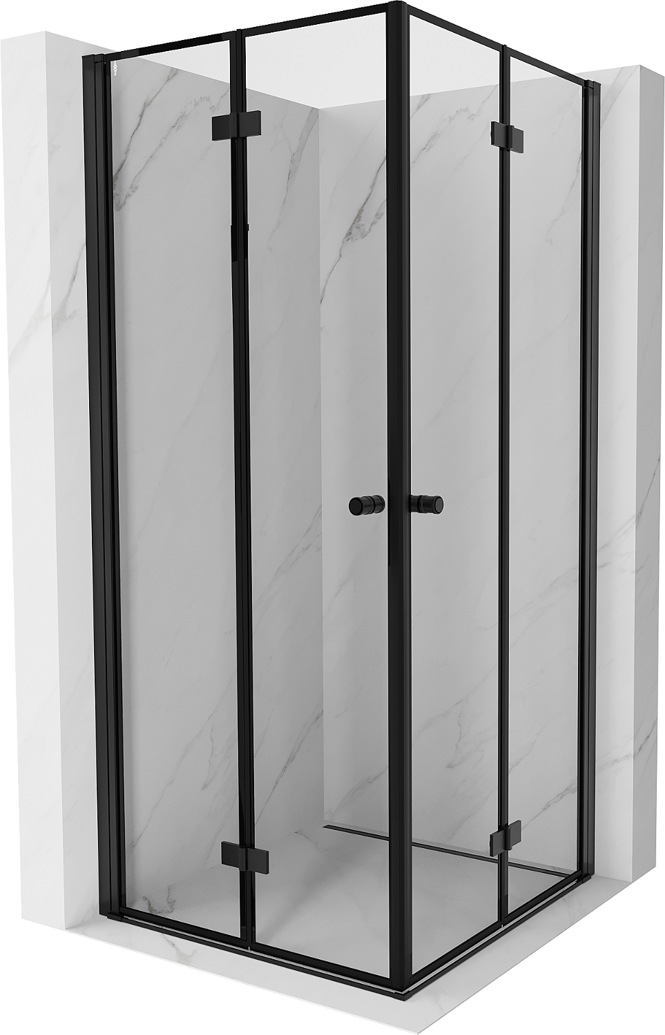 Mexen Mist-F Διπλή πτυσσόμενη καμπίνα ντους 110 x 110 cm, μαύρο πλαίσιο, μαύρη