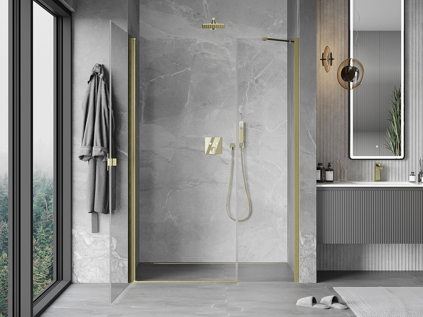 Mexen Mist-B πόρτες ντους ανοιγόμενες 110 cm, διάφανες, χρυσές βουρτσισμένες