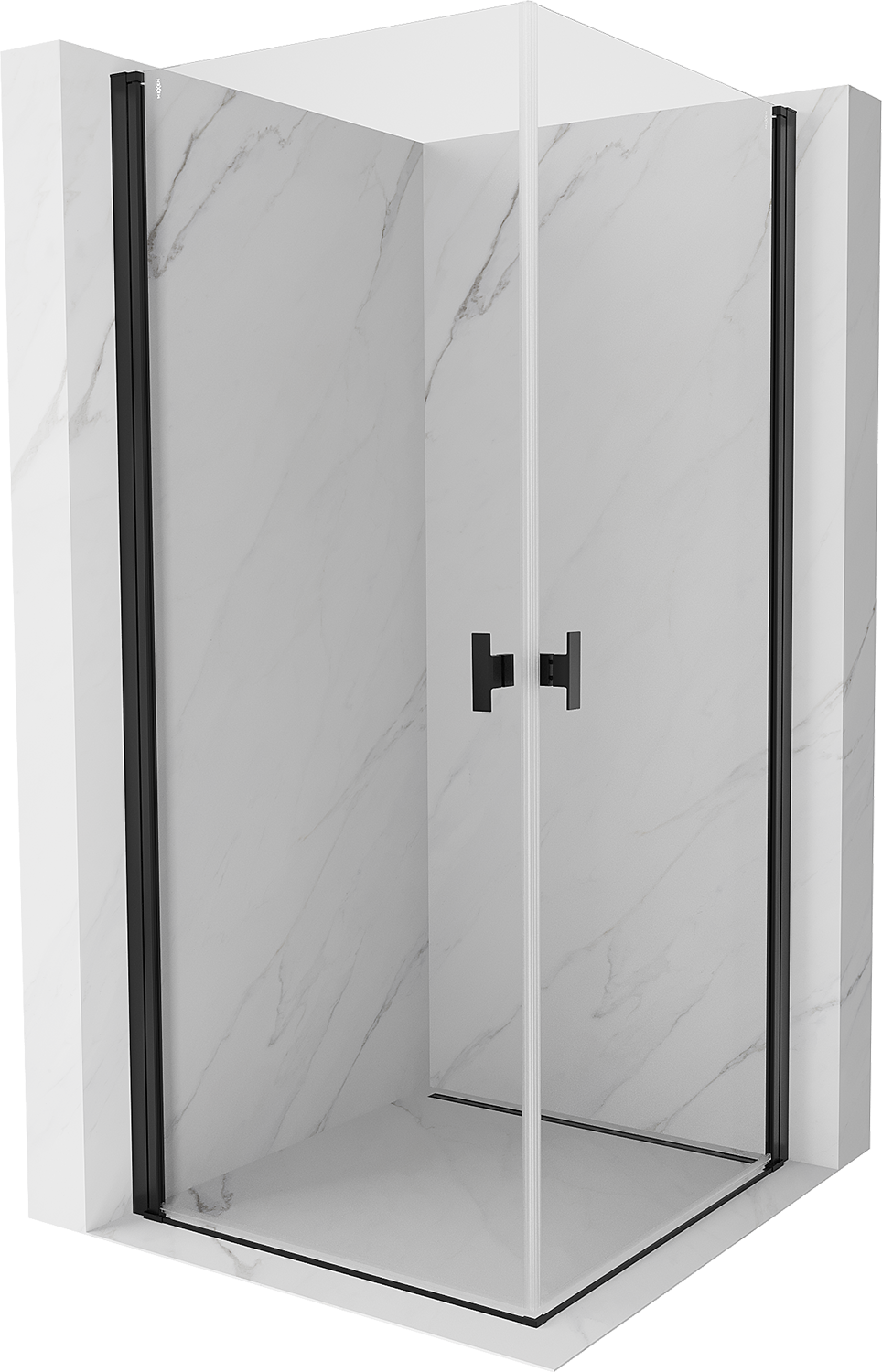Mexen Mist-B Ντουζιέρα με ανοιγόμενη πόρτα Duo 85 x 85 cm, διάφανη, μαύρη