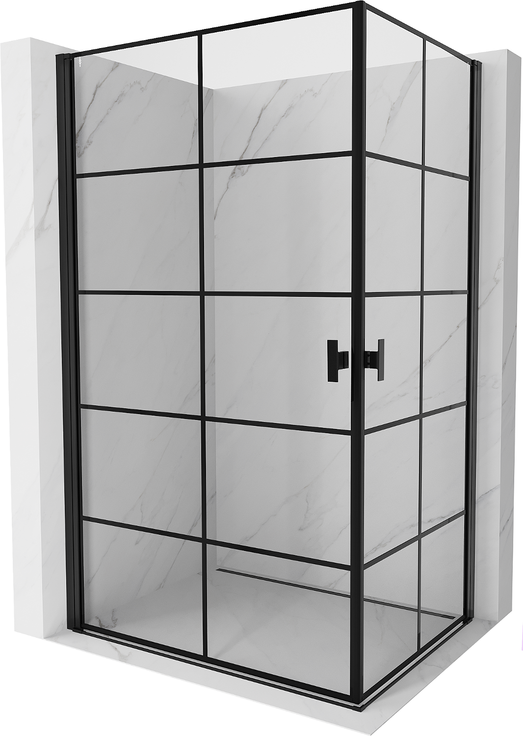 Mexen Mist-B Διπλή καμπίνα ντους ανοιγόμενη 80 x 100 εκ., μαύρο πλέγμα, μαύρη