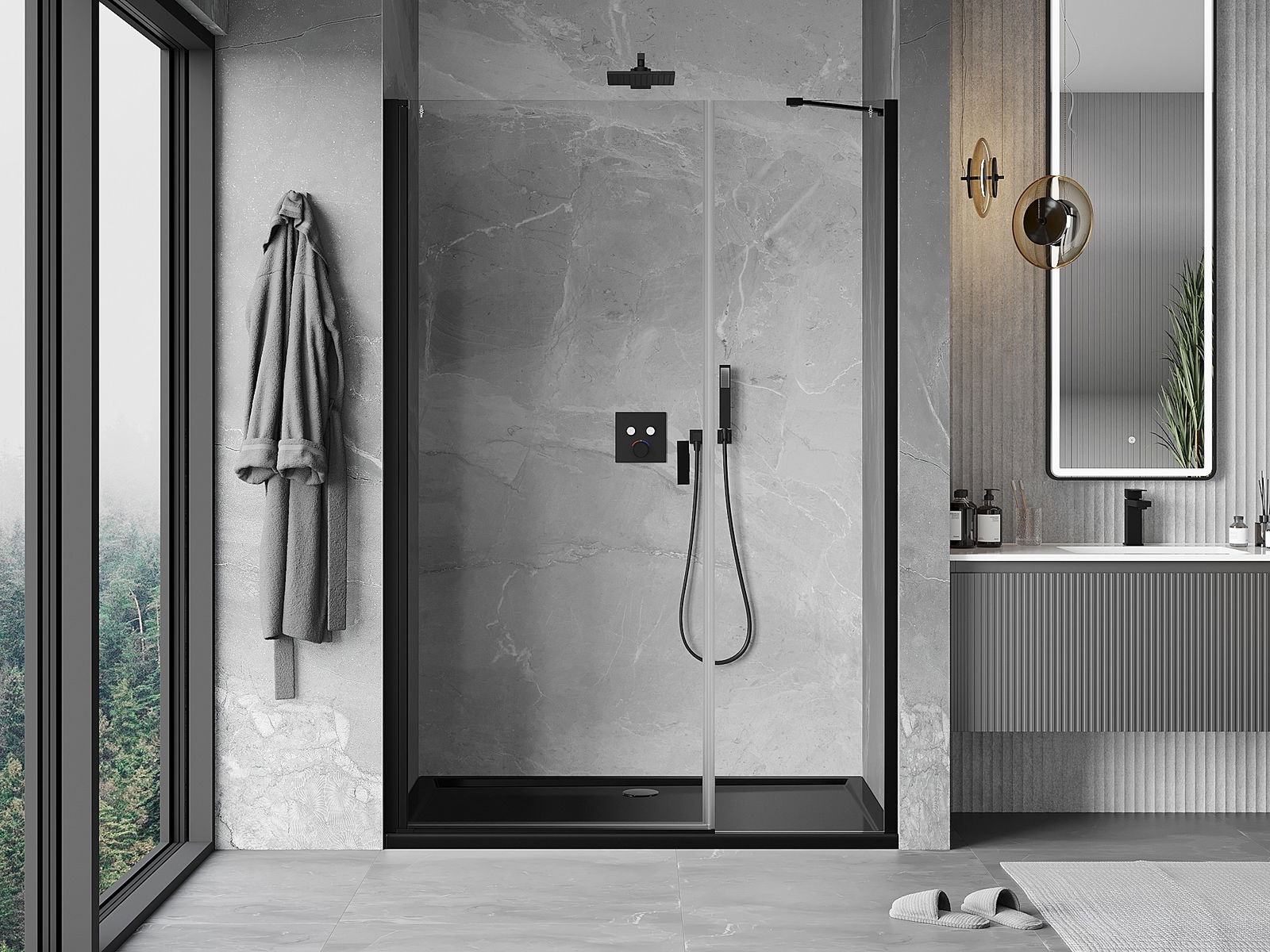 Mexen Mist-B πόρτα ντουζιέρας ανοιγόμενη 100 εκ., διαφανής, μαύρη - 8A2-100-001-70-00