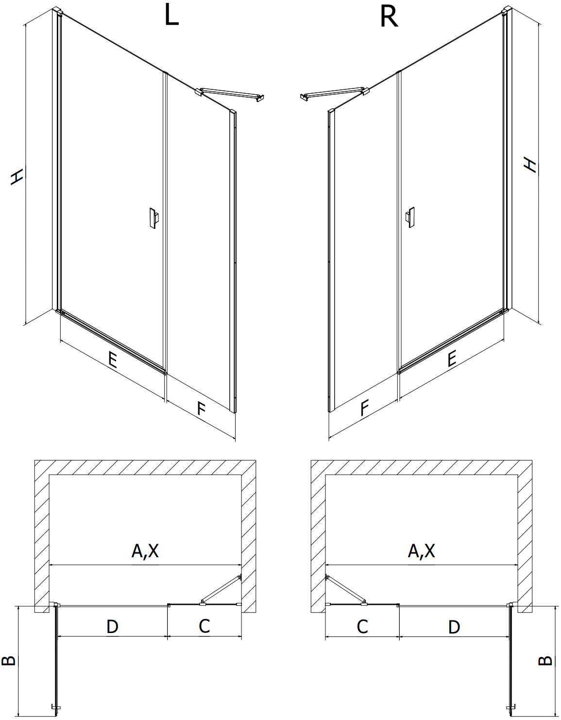 Χάρη στη χρήση ενός καθολικού συστήματος στήριξης, οι πόρτες ντους μπορούν να τοποθετηθούν είτε από τη δεξιά είτε από την αριστερή πλευρά, ανάλογα με τις ανάγκες. Έτσι μπορείτε να σχεδιάσετε με ευκολία ένα ντους προσαρμοσμένο στον χώρο του μπάνιου.