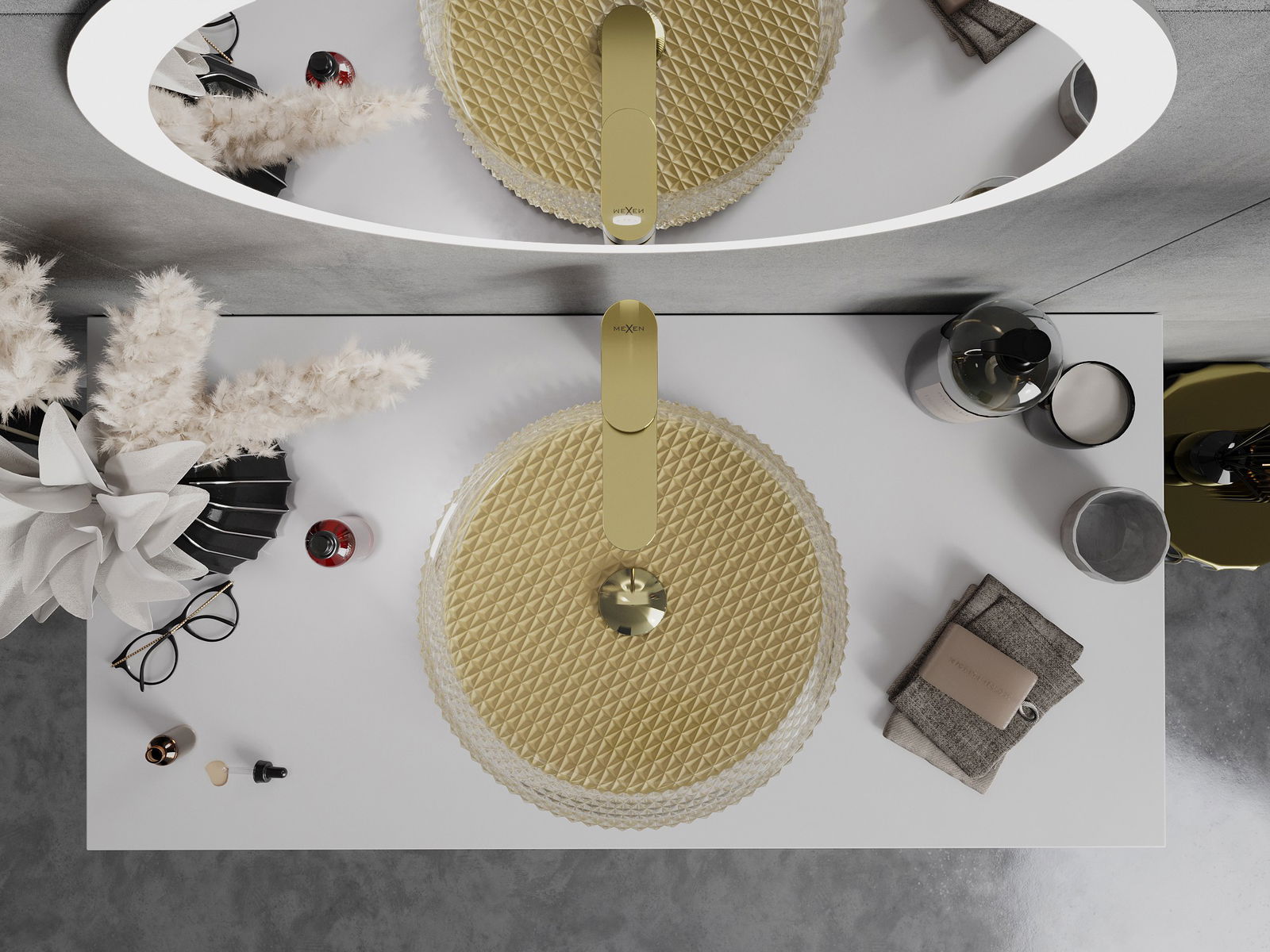 Mexen Aura γυάλινος νιπτήρας επιτραπέζιος 39 x 39 cm, διάφανο/χρυσό - 24013951