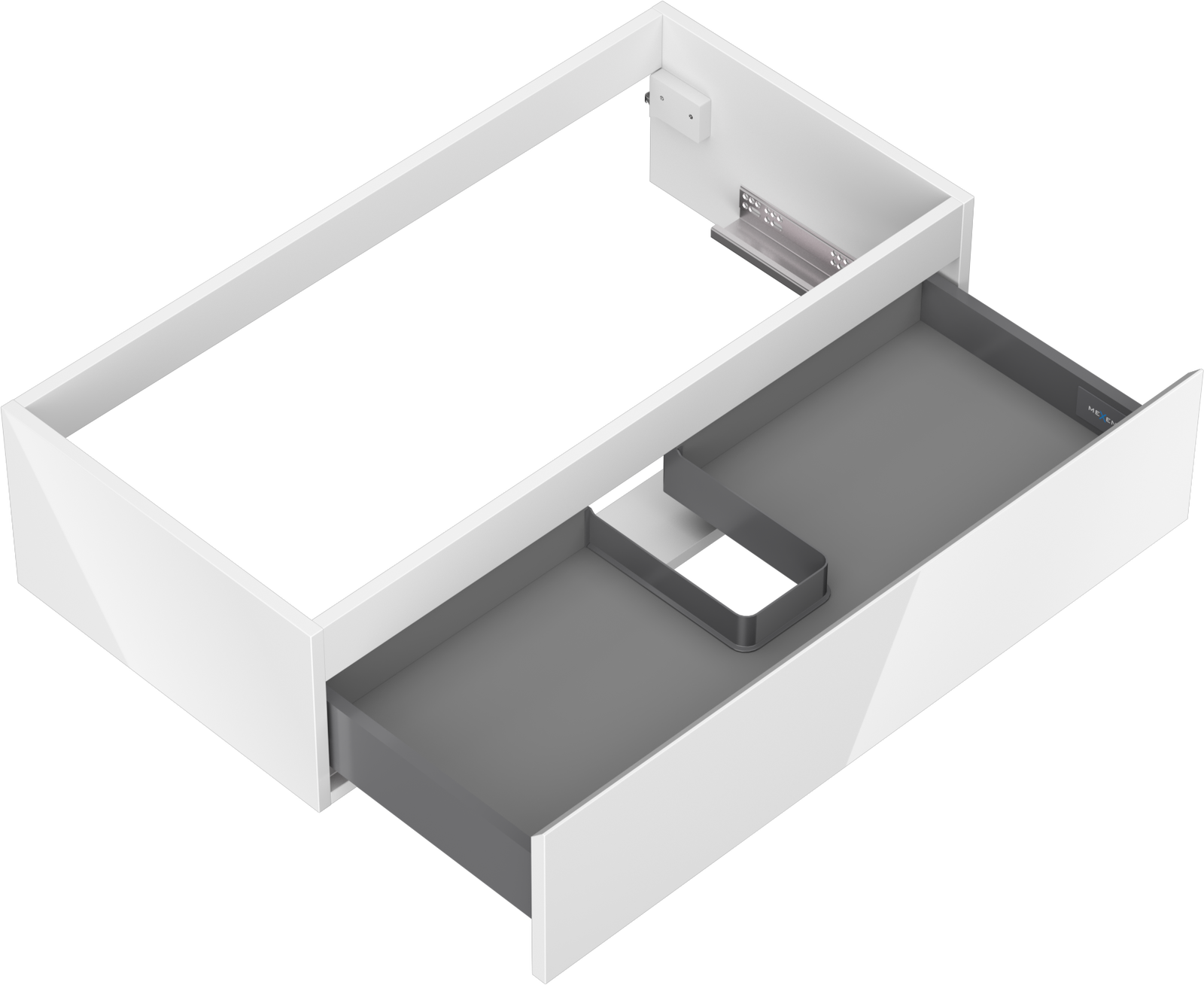 Η εγκοπή στο συρτάρι είναι σχεδιασμένη με τέτοιο τρόπο, ώστε να φιλοξενεί το σιφόνι, το οποίο είναι απαραίτητο στις εγκαταστάσεις νιπτήρων. Έτσι, το έπιπλο μπορεί να εγκατασταθεί πλήρως λειτουργικά, χωρίς την ανάγκη παραίτησης από χώρο στο συρτάρι υπέρ της εγκατάστασης.