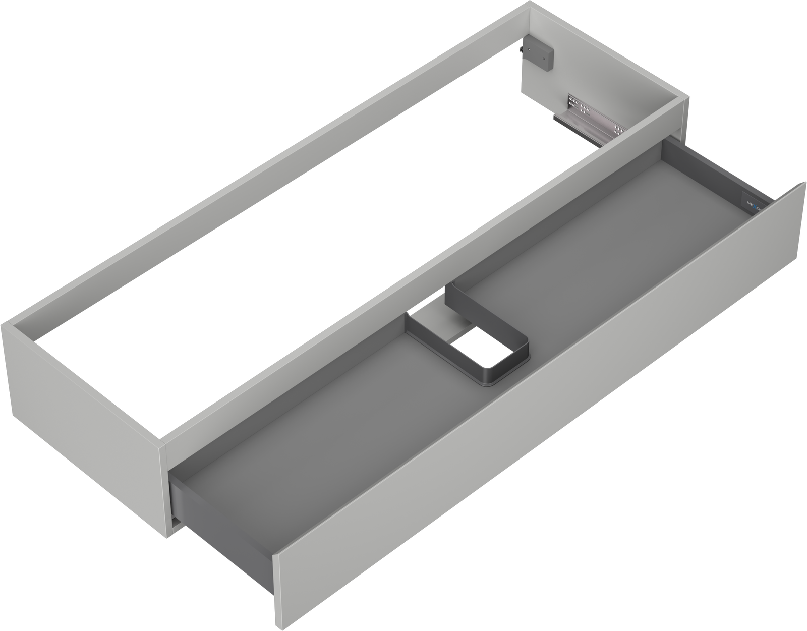 Η εγκοπή στο συρτάρι είναι σχεδιασμένη με τέτοιο τρόπο, ώστε να φιλοξενεί το σιφόνι, το οποίο είναι απαραίτητο στις εγκαταστάσεις νιπτήρων. Έτσι, το έπιπλο μπορεί να εγκατασταθεί πλήρως λειτουργικά, χωρίς την ανάγκη παραίτησης από χώρο στο συρτάρι υπέρ της εγκατάστασης.